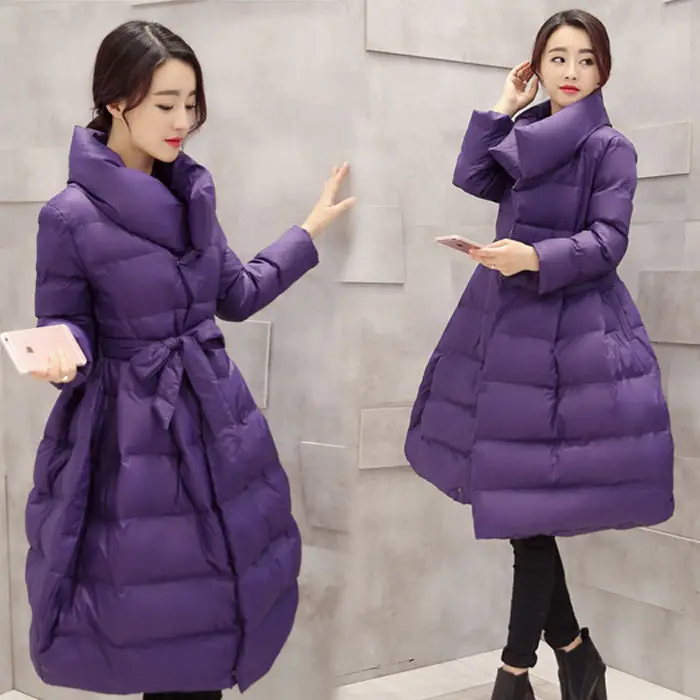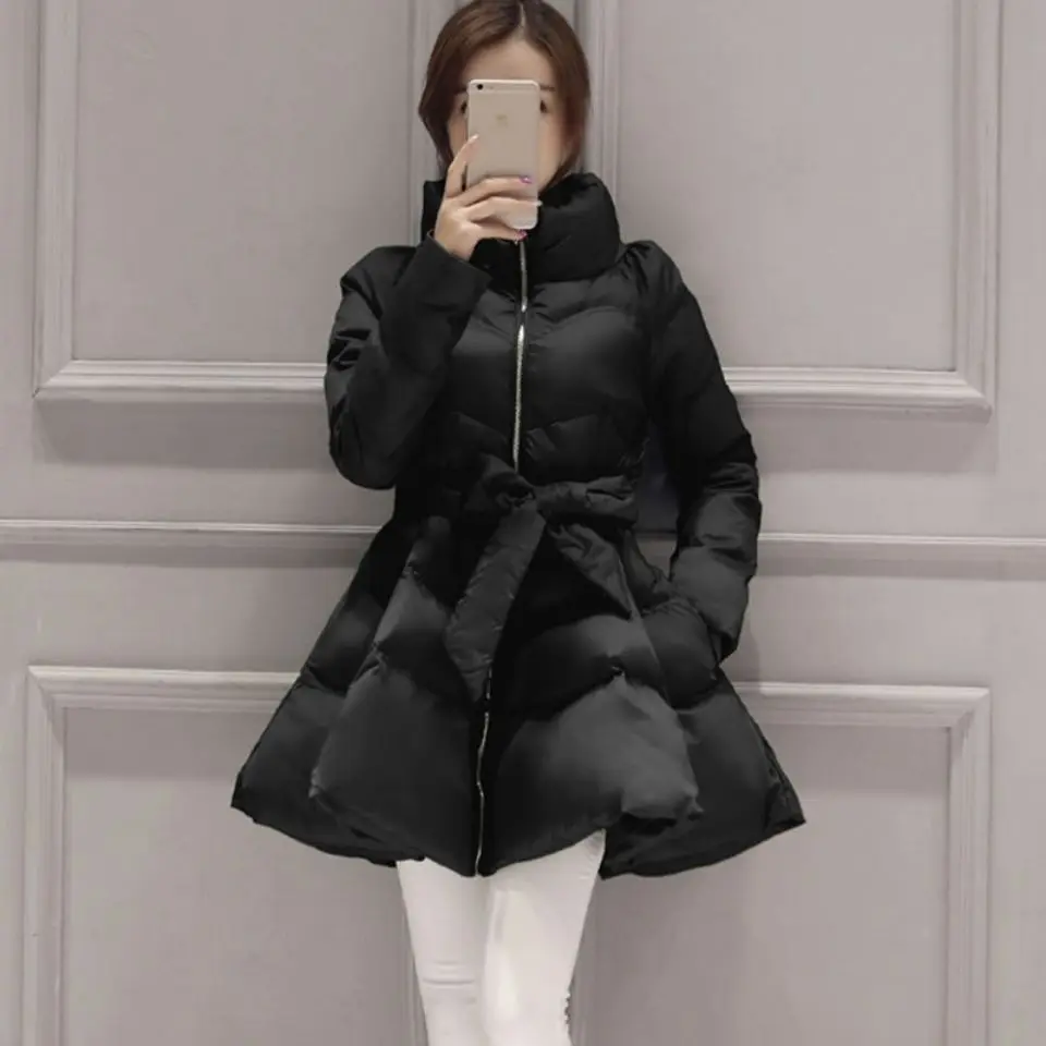 Женская куртка, новинка 2021, зимнее теплое пальто с длинным рукавом, на молнии, с бантом на поясе, утепленный хлопковый Повседневный Длинный топ, женский костюм, верхняя одежда