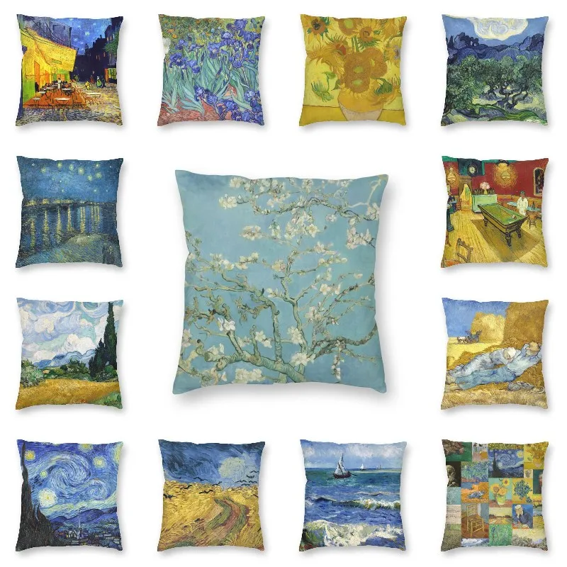 Мягкий чехол с изображением миндаля Ван Гога, цветов, домашний декор, квадратная наволочка для подушки с изображением звездной ночи, масляной живописи, наволочка для дивана