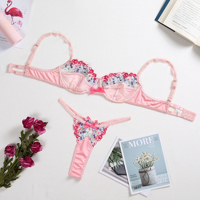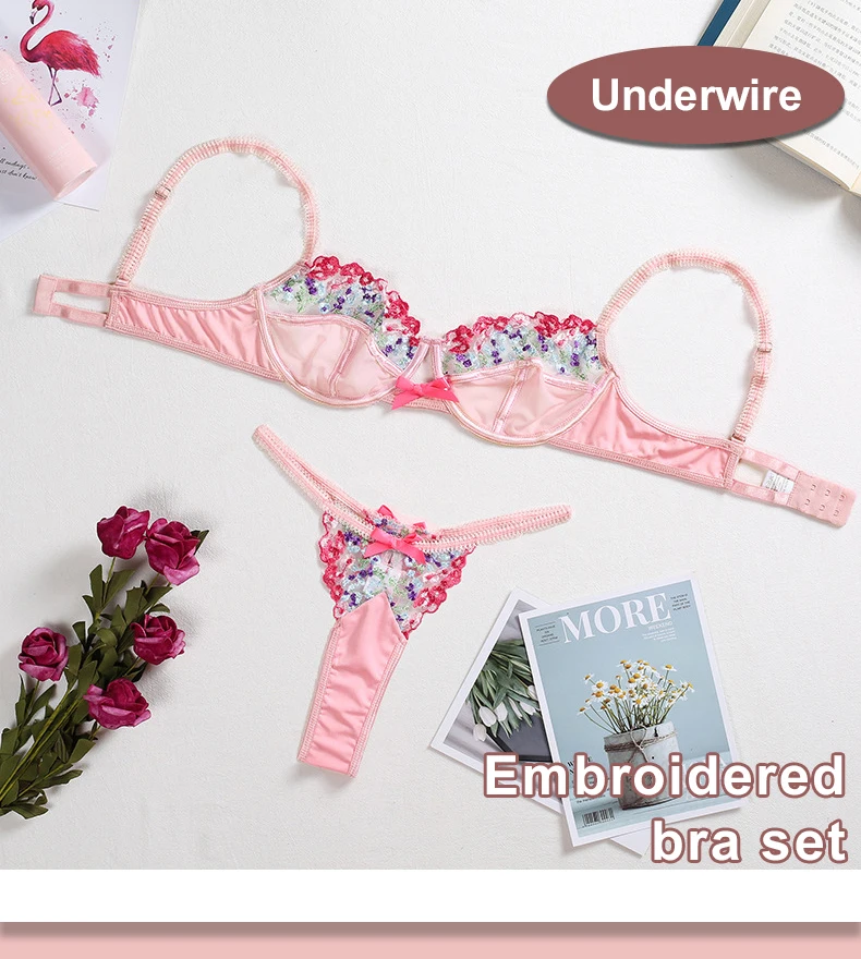 Комплект женского нижнего белья с вышивкой, Привлекательный бюстгал...