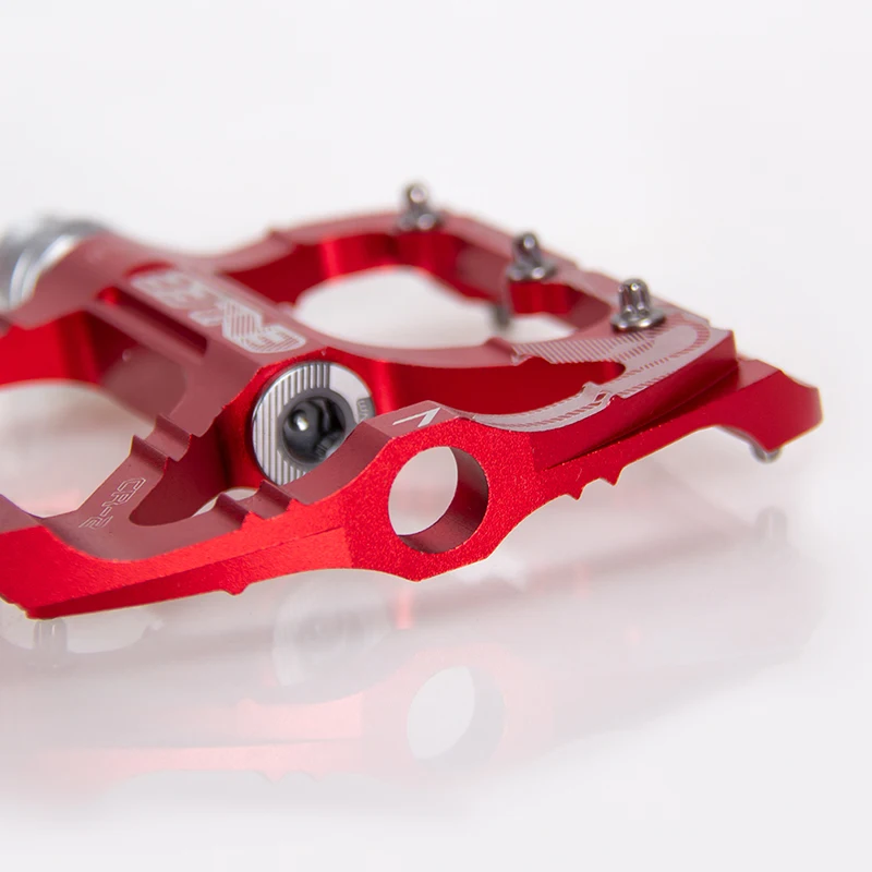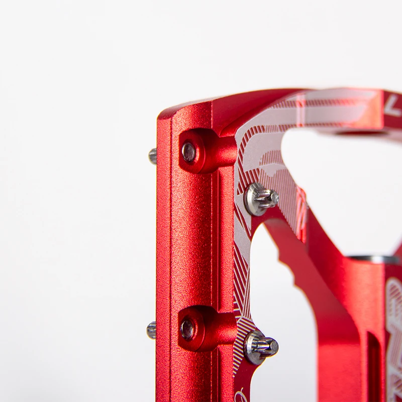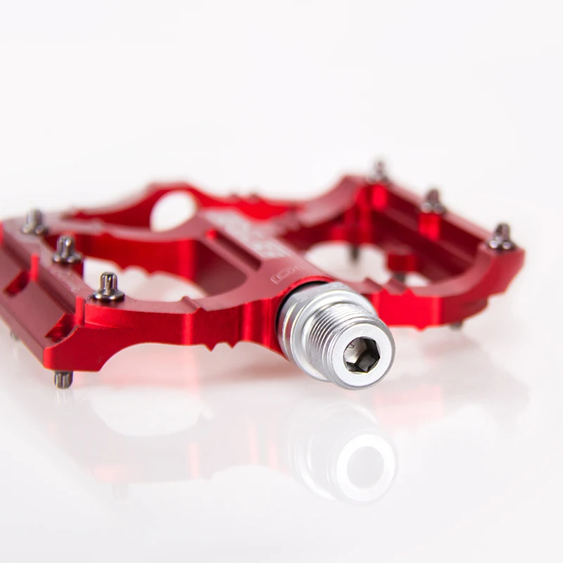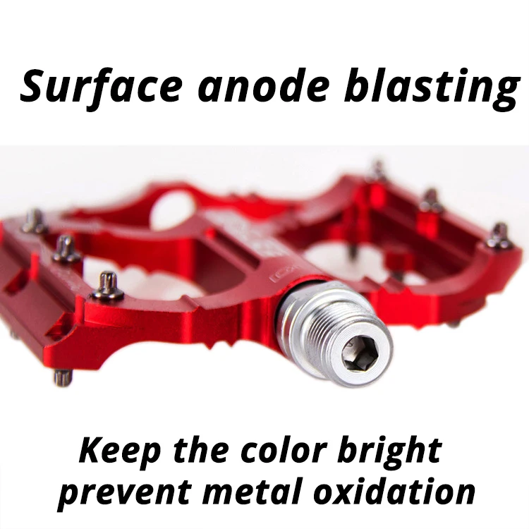 Особенности:1. Высококачественный материал из алюминиевого сплава, легкий, стабильный и прочный.2. Противоскользящие гвозди с каждой стороны обеспечивают большую безопасность на педалях и удерживают ноги на месте.3. Широкая платформа и Легкий эргономичный дизайн обеспечивают комфорт и повышают эффективность педалирования.4, легко установить на ваши велосипеды. Подходит для большинства велосипедов.Спецификация:Цвет:Черный/красный (опционально)Материал:Алюминиевый сплавПодшипник:DU