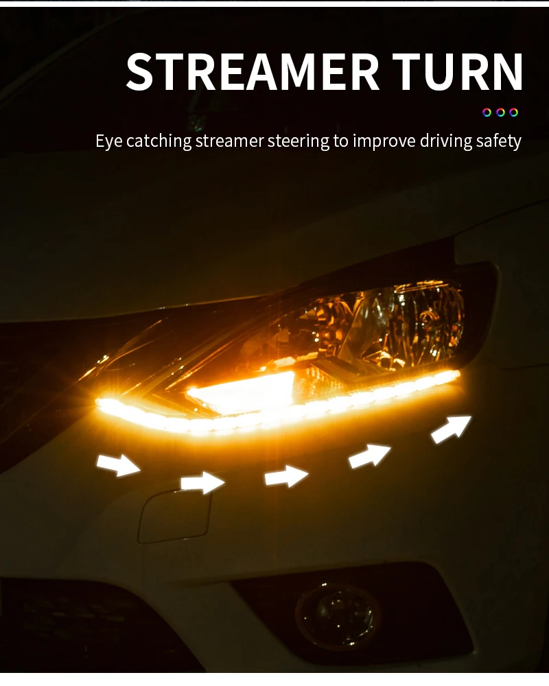 2 шт. DRL светодиодные дневные ходовые огни Гибкие водонепроницаемые фары сигнал поворота желтые лампы автомобильные декоративные фары дальнего света 12 В