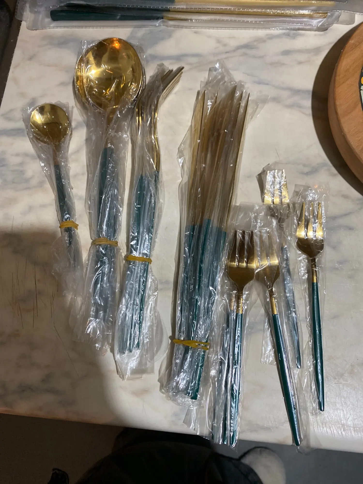 Набор золотых столовых приборов из 6 предметов, столовые приборы из...