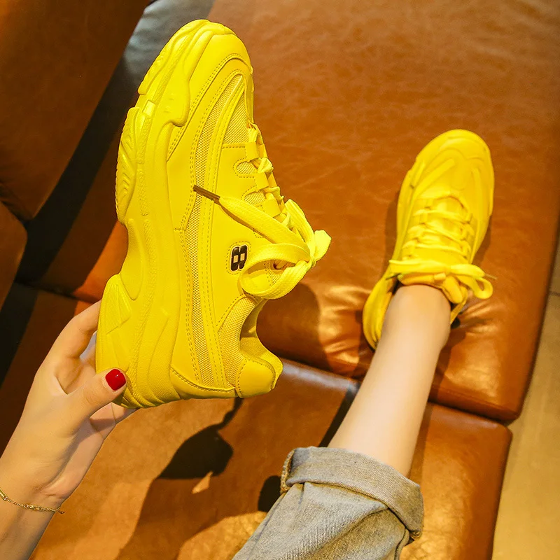 Женские Дизайнерские кроссовки, повседневная обувь на платформе, на шнуровке, массивные, желтые, 41
