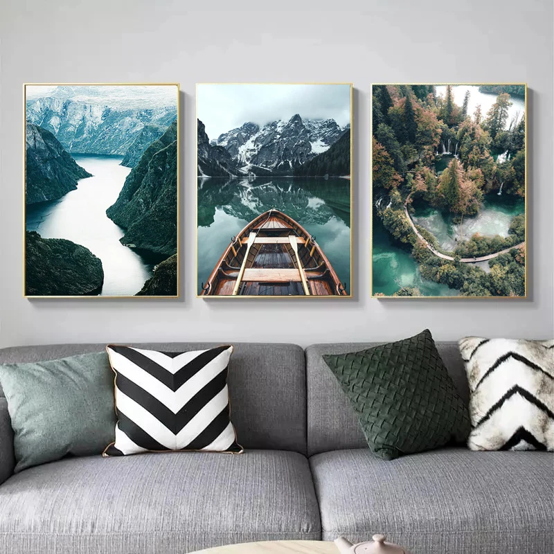 Тканевая картина с изображением озера, лодки, природного леса, настенный художественный плакат, картина для украшения дома в скандинавском стиле, современная картина для украшения дома
