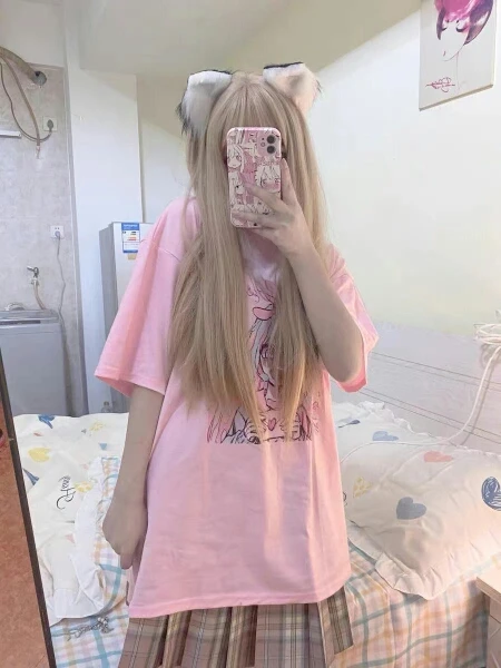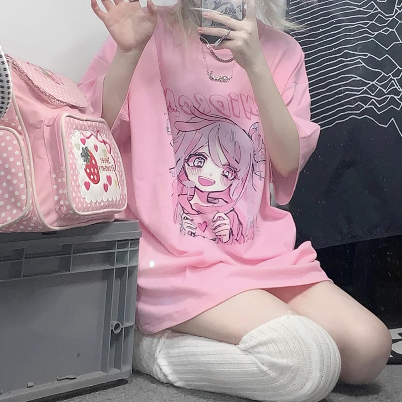 Футболка женская в стиле японского аниме, милая розовая одежда в стиле гранж и альт, Готическая Винтажная футболка в стиле Харадзюку и ольччан, y2k
