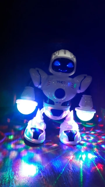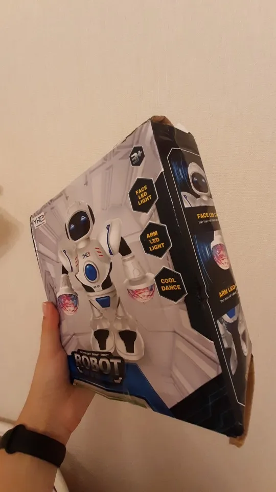 Робот понравился ребенку, танцует, музыка веселая и светится, всё как в описании. Продавец отправил быстро и доставка быстрая. Коробка немного помялась в процессе перевозки, но робот весь целый. Продавца рекомендую