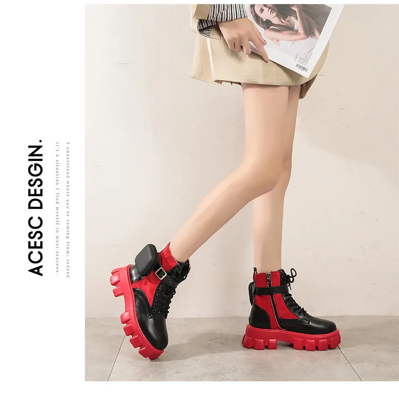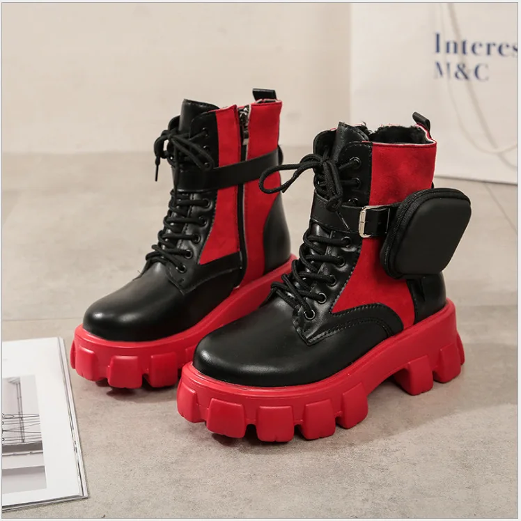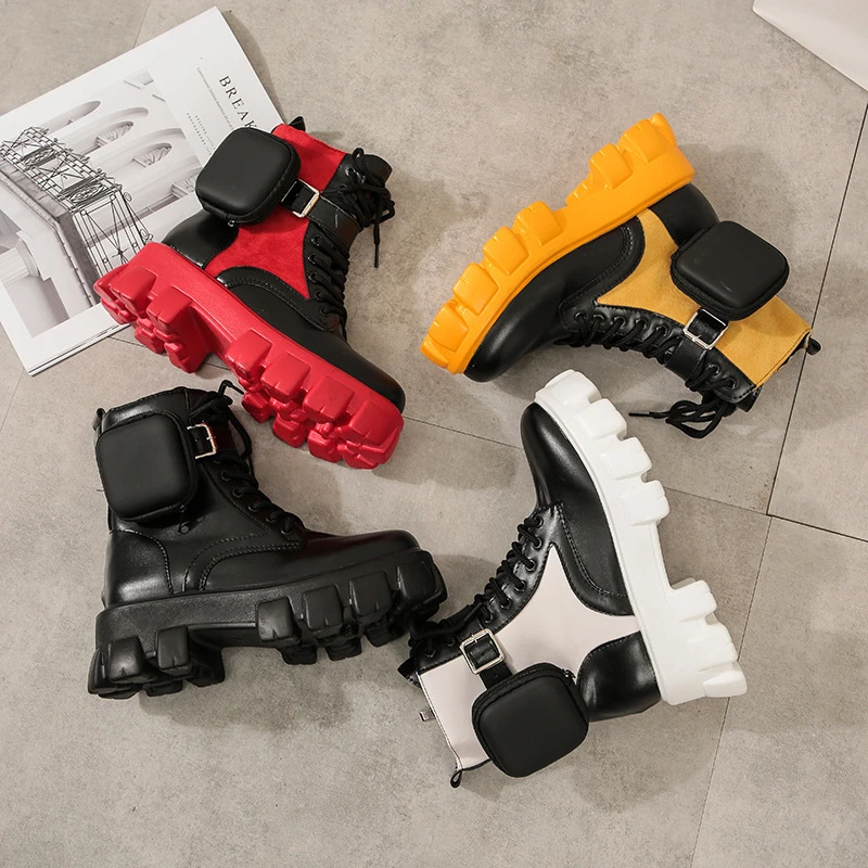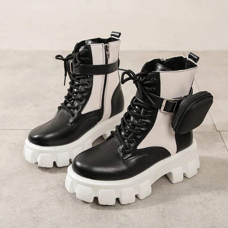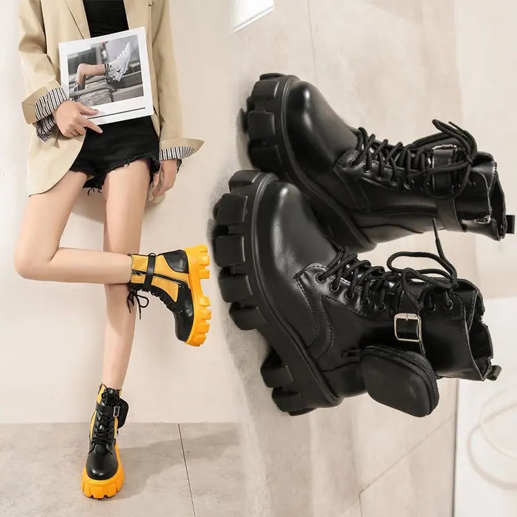Женские ботильоны на шнуровке с карманами, женские черные ботильоны...