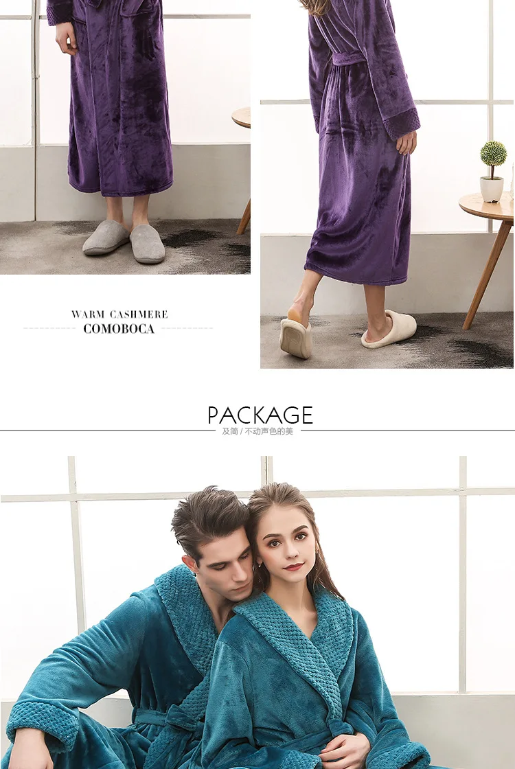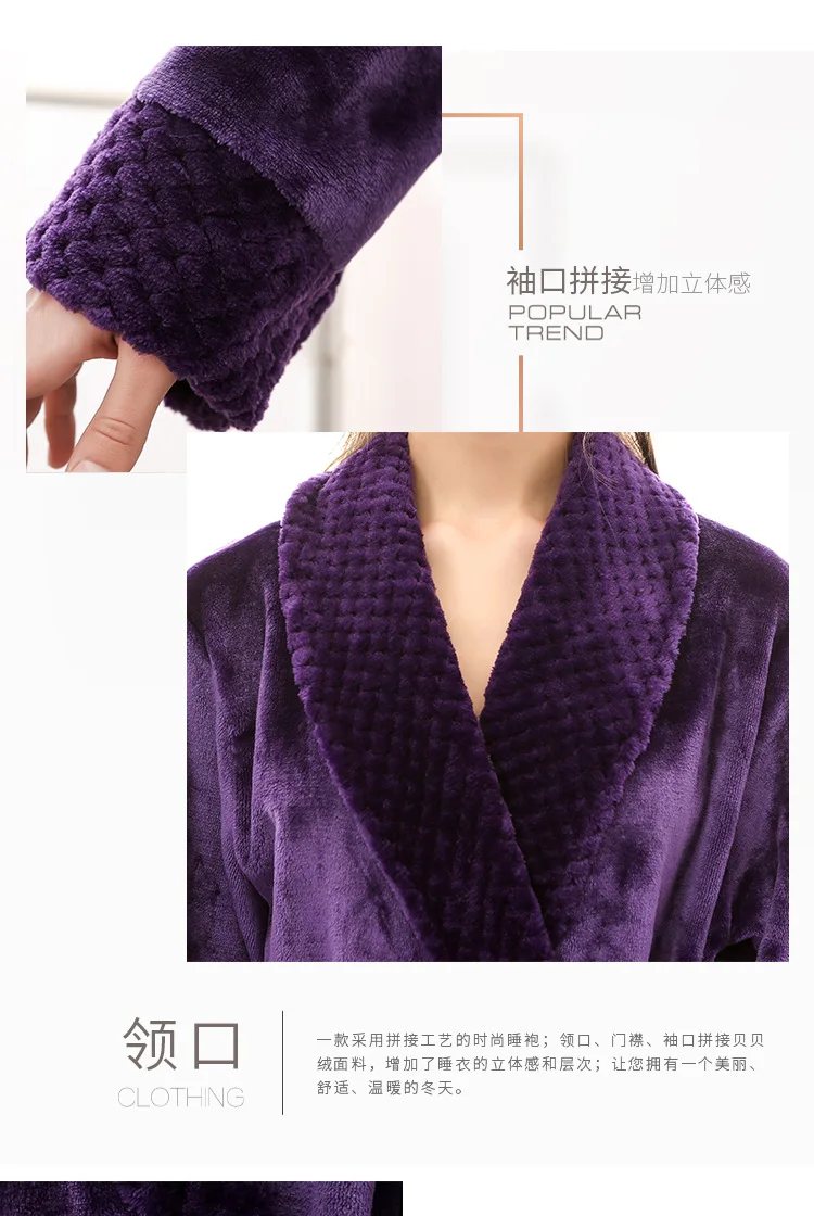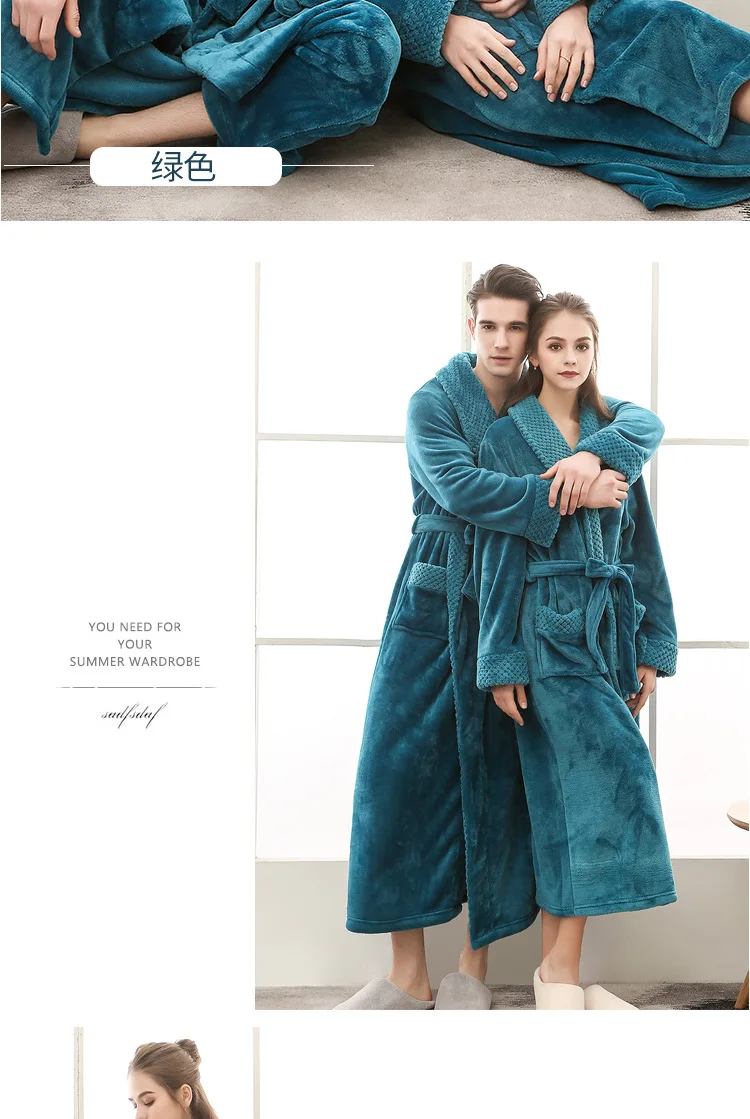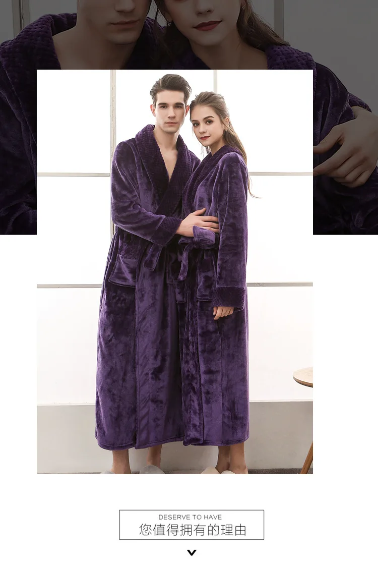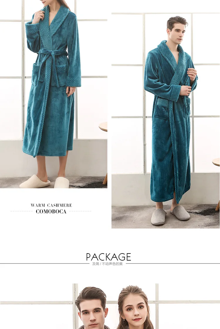 Халат Махровый Женский, с V-образным вырезом, с длинным рукавом, фланелевый, с карманами, размера плюс
