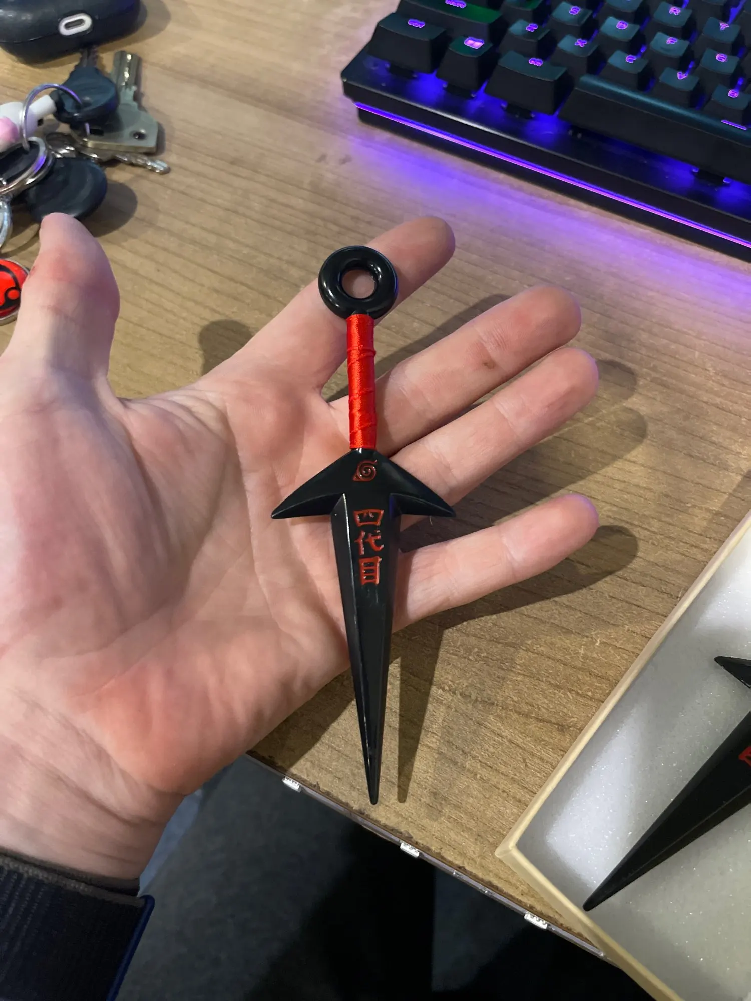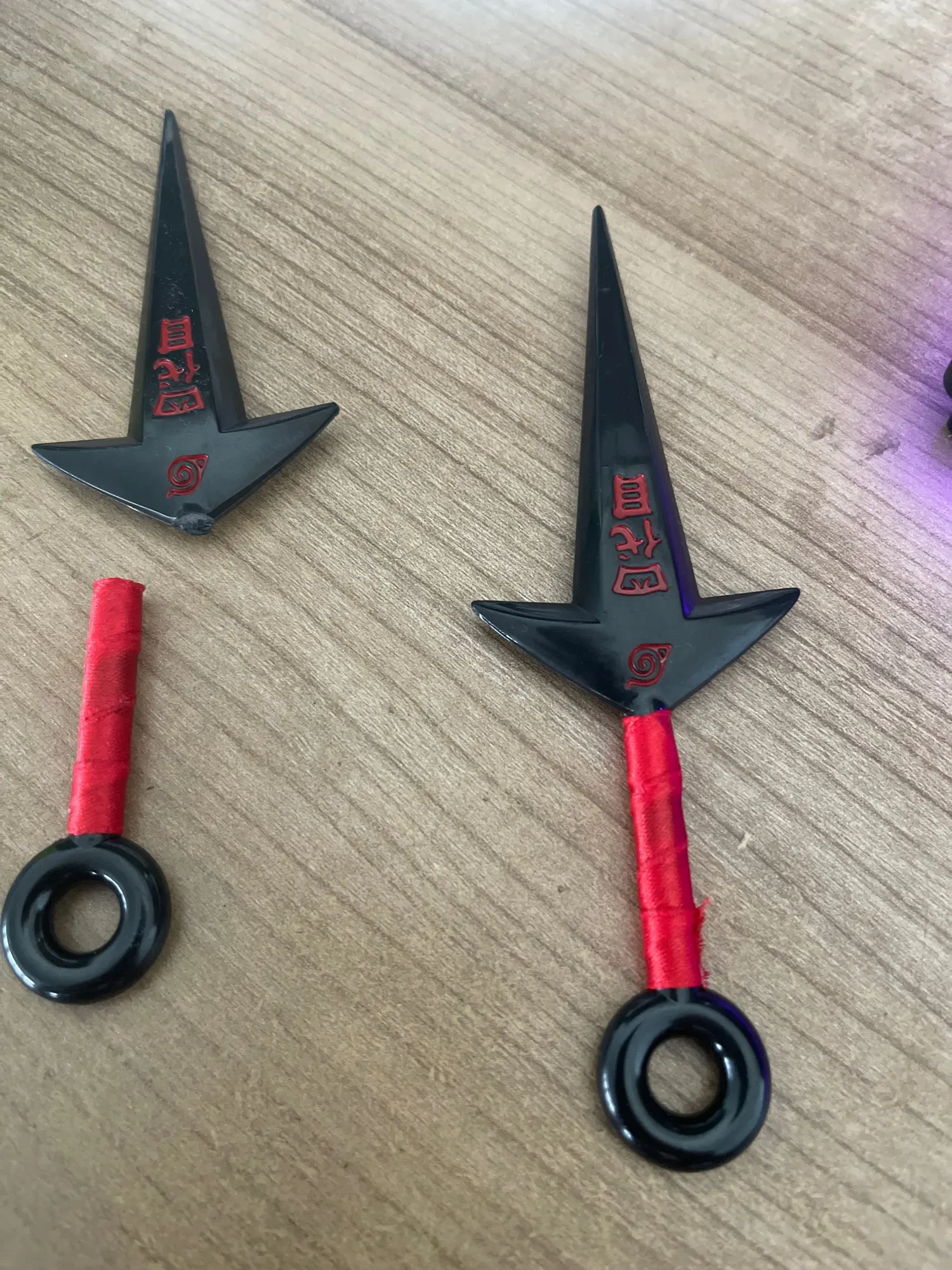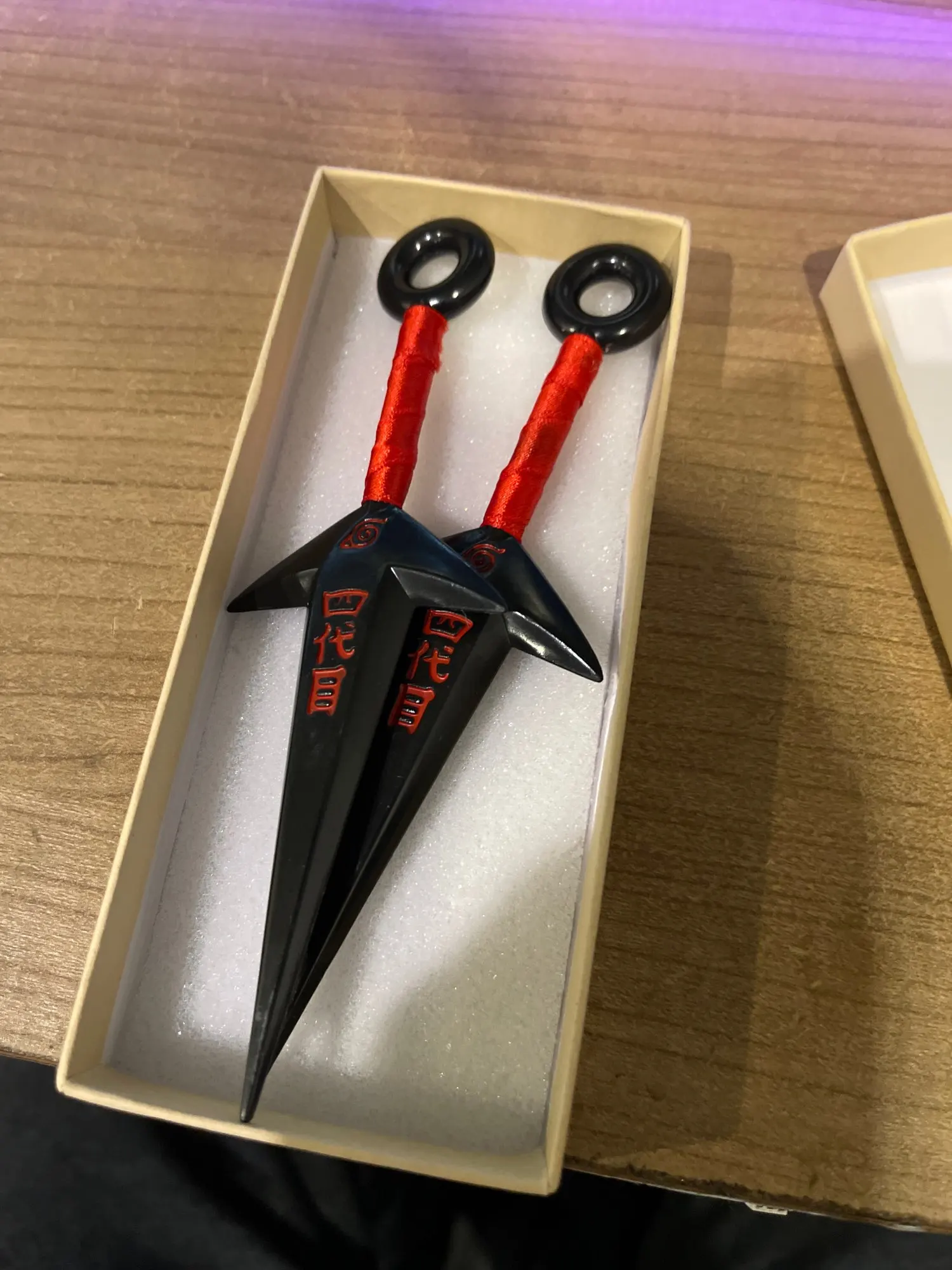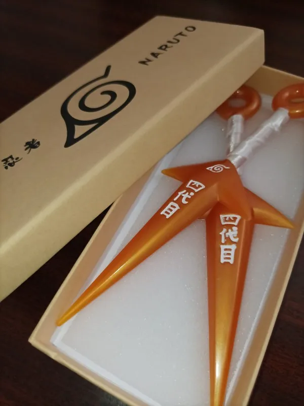 Фантастический набор! Я не могу быть счастливее иметь его в моих руках. Я должен сказать, что я думал, что они будут больше и тяжелее, но, несмотря на то, что они пластиковые, они хорошего качества и отличного коллекционирования или украшения. Я очарован ими. У них красивый цвет, и в письме они упоминают владельца, Minato Namikaze, указывая «четвертый» в японских буквах в белом цвете и на них. Детали ленты и гравировки меня очень удивили. Большое спасибо, дэттебао!