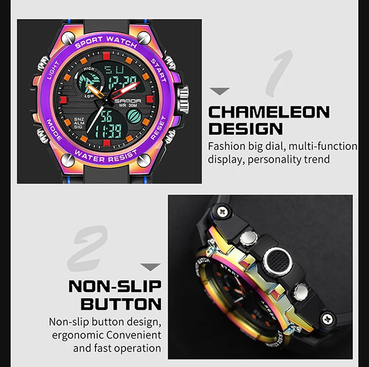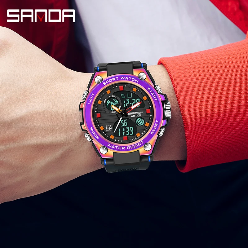 Мужские наручные часы SANDA, водонепроницаемые, с двойным дисплеем