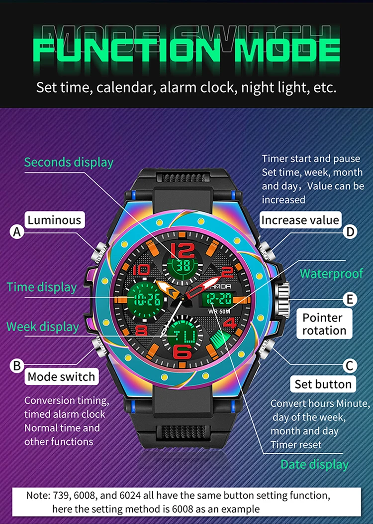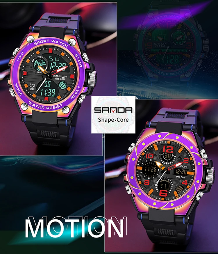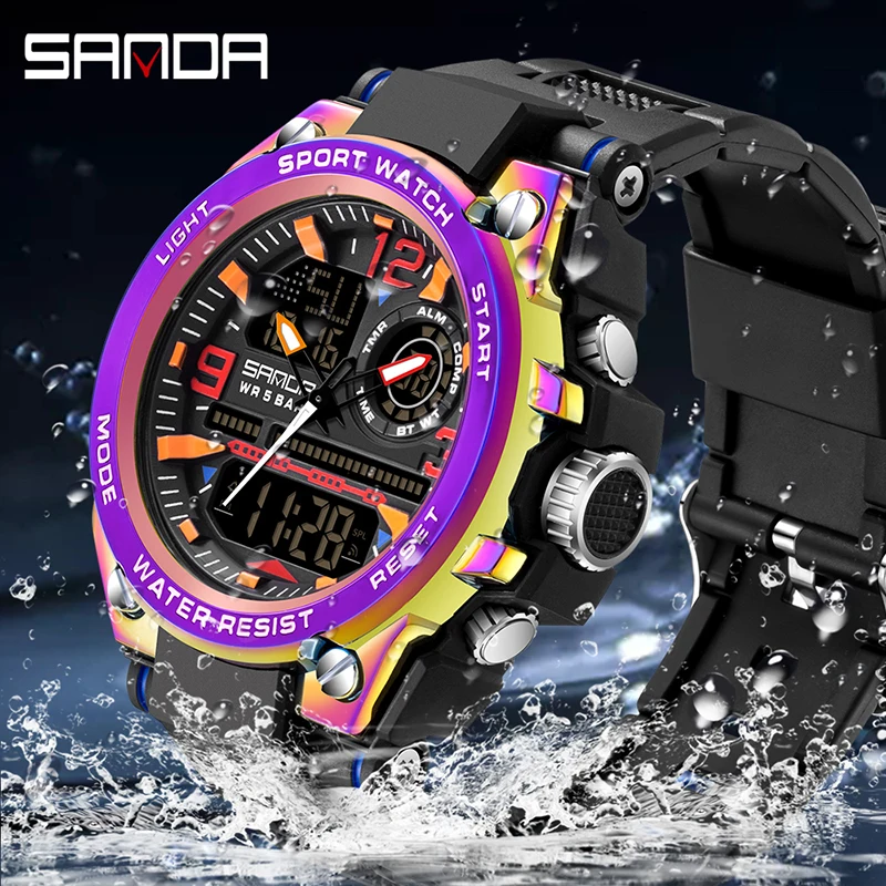 Часы SANDA мужские водонепроницаемые с двойным дисплеем, брендовые ...