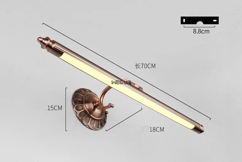 8 Вт светодиодный зеркальный светильник 500 мм Европа американское Ретро 85-265 в ванная комната настенный светильник спальня отель Ресторан украшение бра