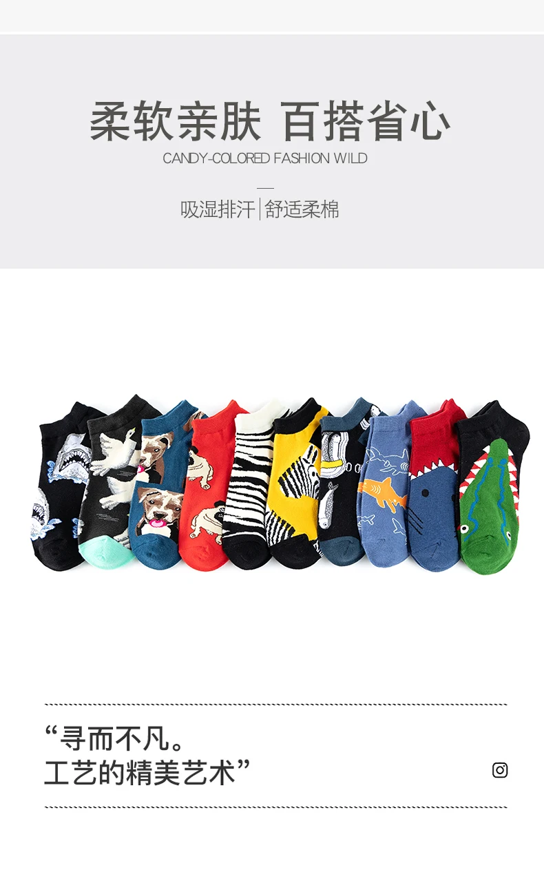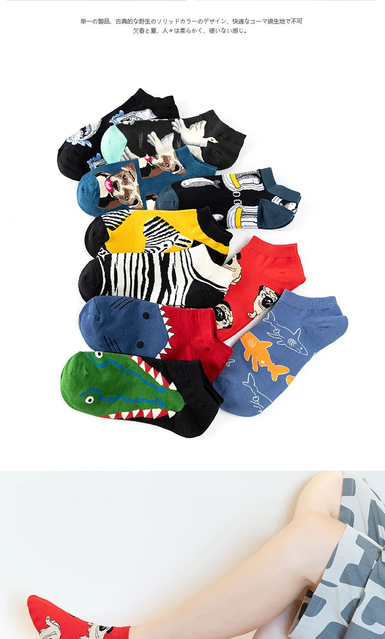 Носки мужские короткие унисекс с принтом зебры, акулы, крокодила, бульдога, пива, астронавта