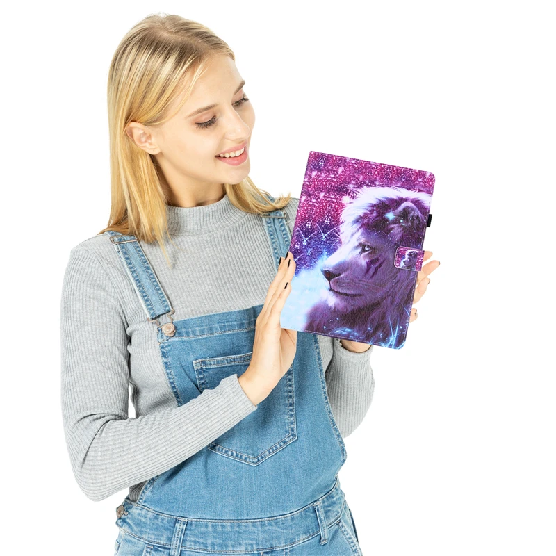 100% новый бренд, высокое качество, Новое поступление, роскошный модный милый мультяшный единорог, Бабочка, красочная картина, цветок, Череп, слон, блеск, луна, фламинго, Лев, дерево, волк для мужчин, детей, мальчиков и девочек, искусственная кожа, откидная подставка, слот для карт, чехол для планшета, защитный чехол чехлы Кожаные чехлы coque capa чехол etui.