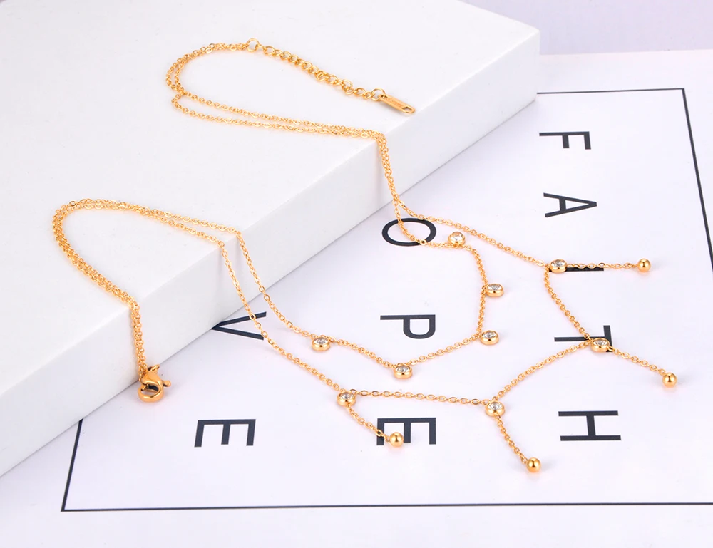 Женское Ожерелье с кулоном Lokaer, Двухслойное ожерелье-чокер из нержавеющей стали с белым кубическим цирконием и кристаллами, N21109