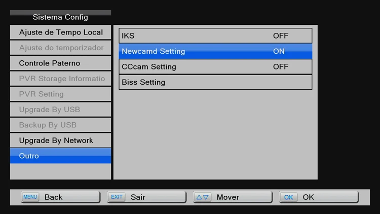 Поддержка Cccam, Newcam через usb Wifi ключ и RJ45