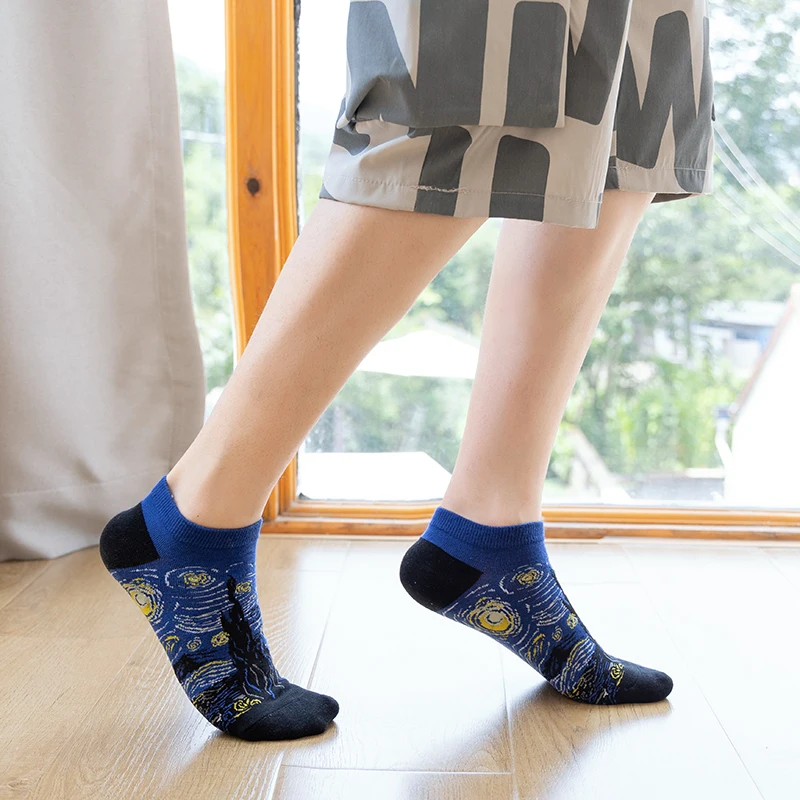 Унисекс Звездная ночь зимние женские туфли в стиле ретро Личность Искусство Ван Гог носки картина маслом носки смешные счастливые короткие носки; Сезон весна-лето