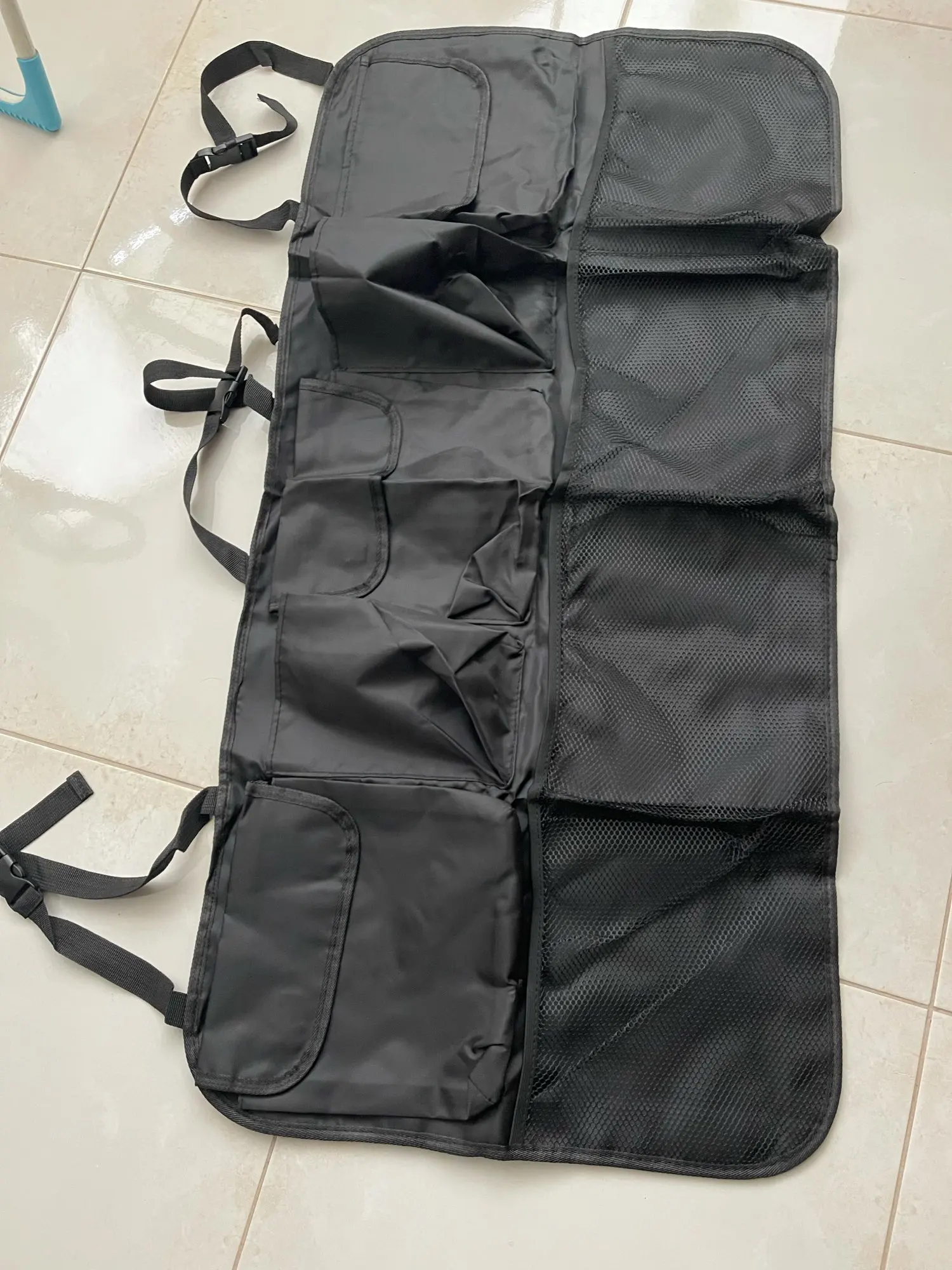 Думала будет хуже. Но оказался хороший органайзер. Сзади окантовка липучек, если сидение сзади пластик, можно допусти вокруг чем то обвить и сзади на липучки прилепить, чтоб прилегал к сидению. Рекомендую. )))