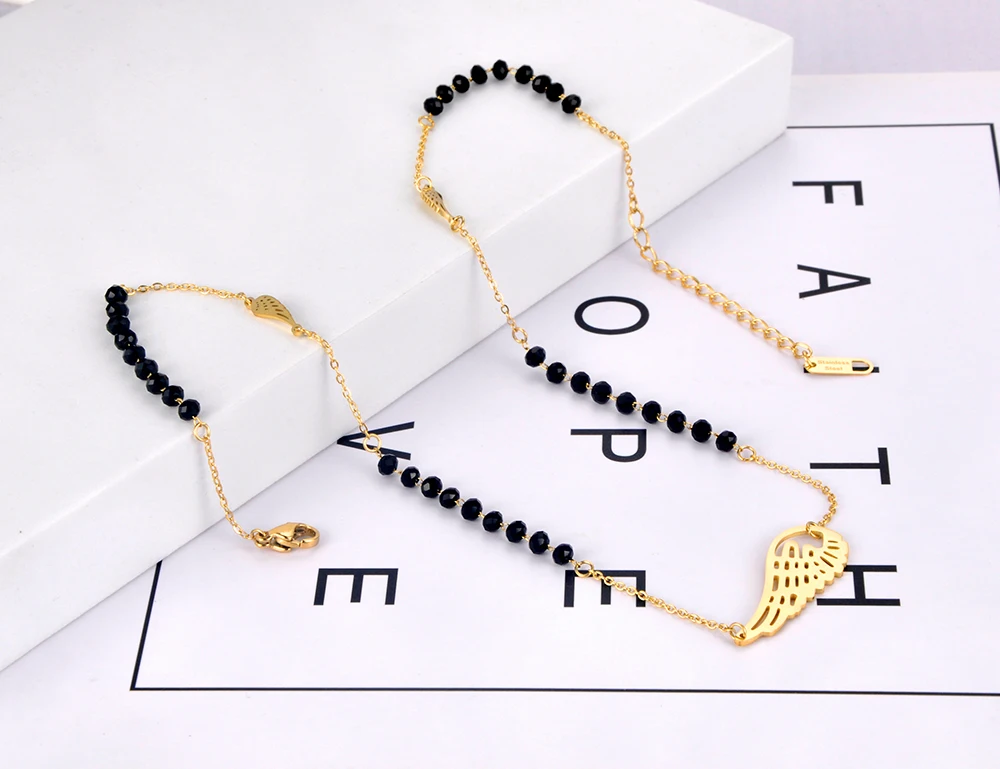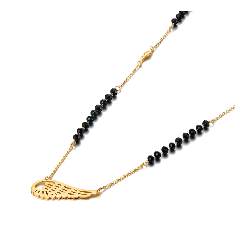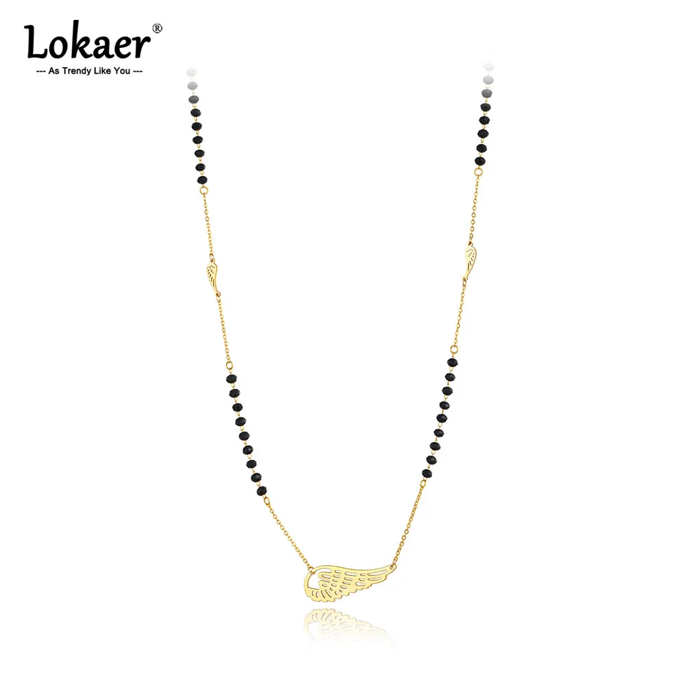Lokaer в богемном стиле из нержавеющей стали, легированной титаном, ожерелье с крыльями ожерелье для женщин и девушек, оригинальный дизайн черного цвета с украшением в виде кристаллов цепи ожерелье N21128
