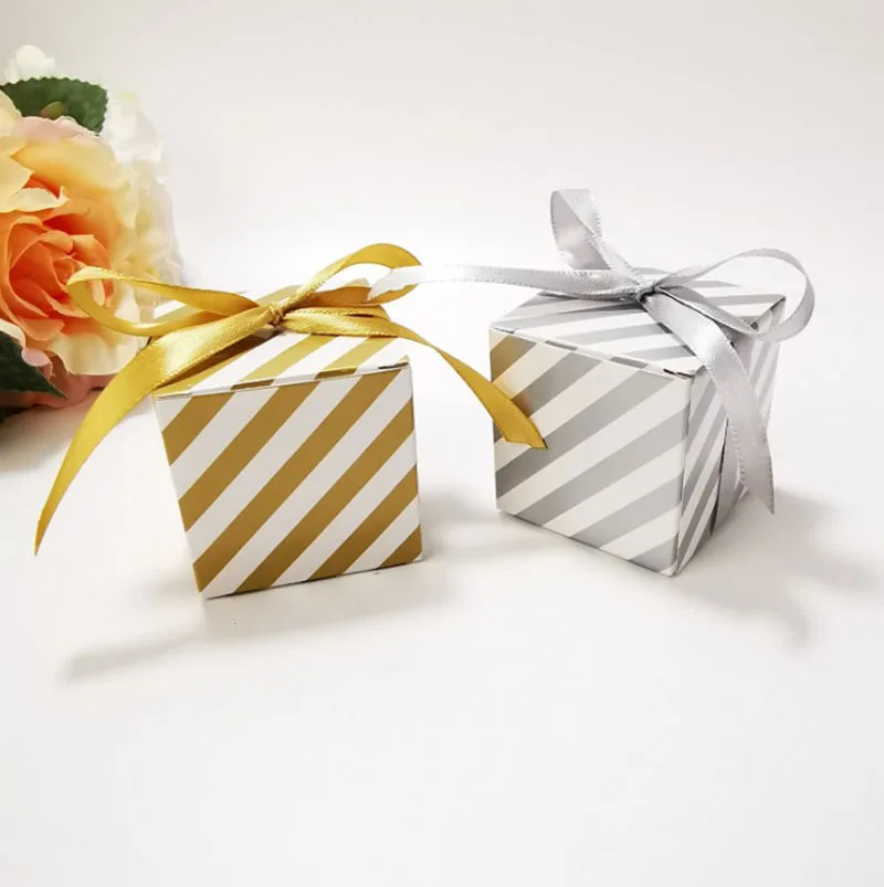 Новое поступление, золотые и серебряные полосатые подарочные коробки со звездами, коробка для конфет, крекеров, печенья для упаковки, товары для свадебных торжеств Вечерние