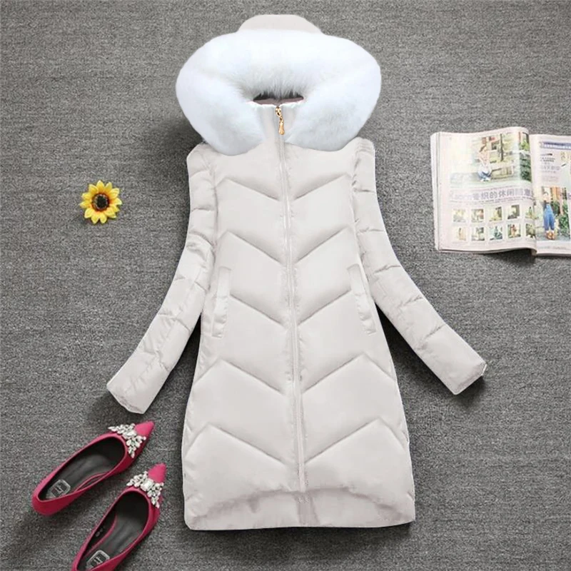 Зимнее женское пальто с капюшоном, белое, теплое, с меховым воротни...