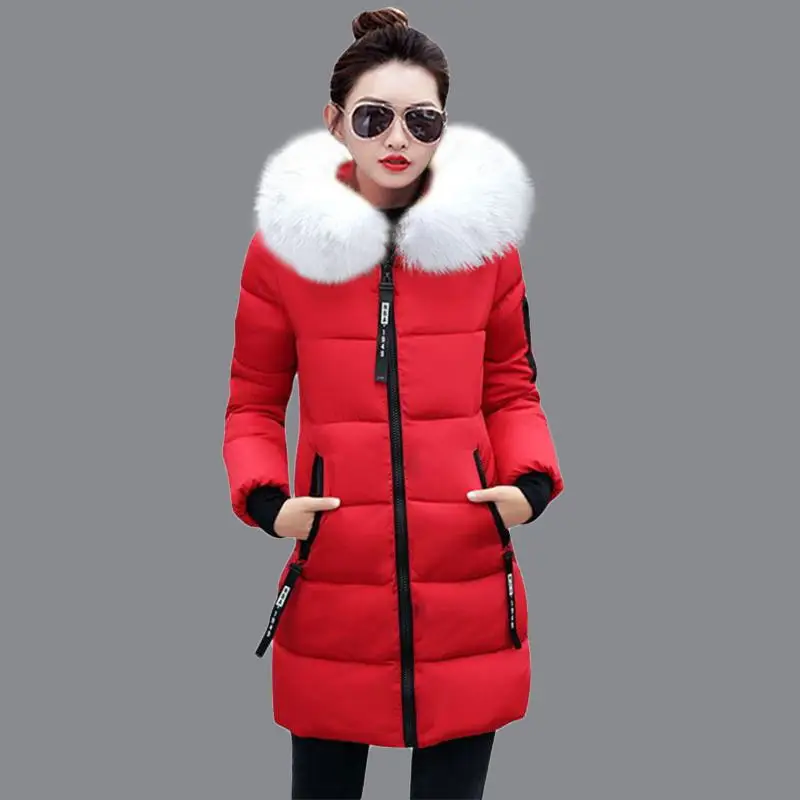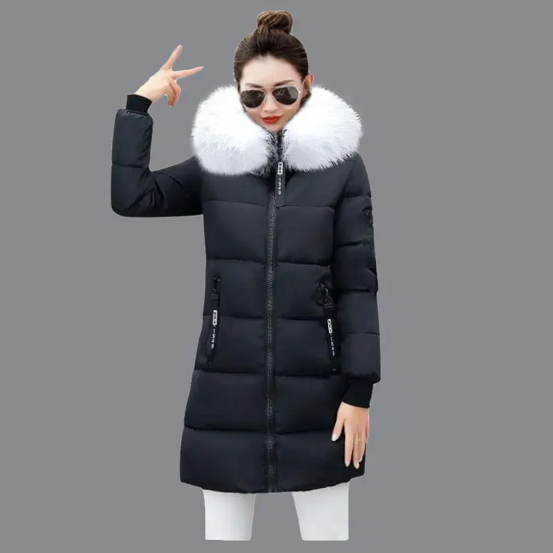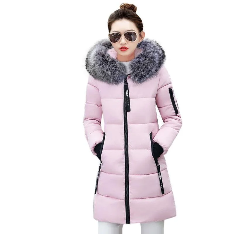 Парка женская зимняя, длинная, хлопковая, повседневная, с меховым капюшоном, толстая, теплая, 2021