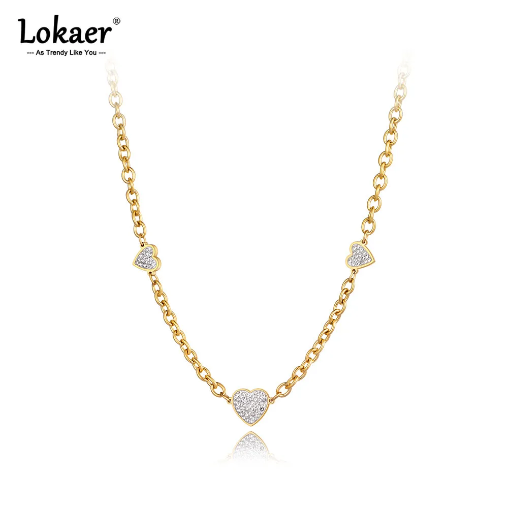 Очаровательное ожерелье Lokaer, из нержавеющей стали, с белой глиной, стразы, в форме сердца, ювелирные изделия для женщин и девочек, N21123, симпатичное ожерелье с подвеской
