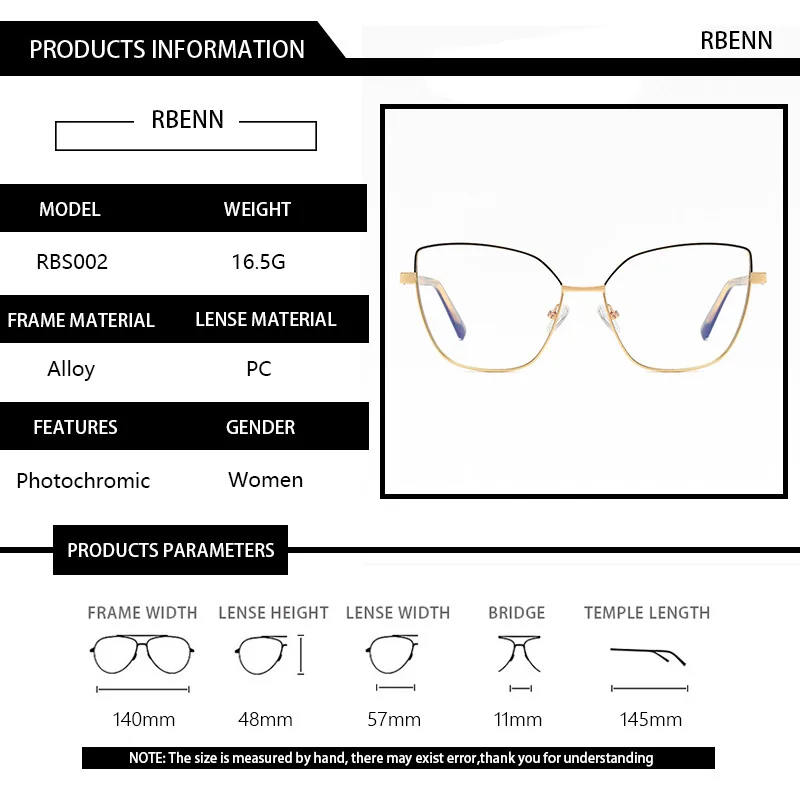 Очки RBENN кошачий глаз женские, брендовые дизайнерские модные очки...