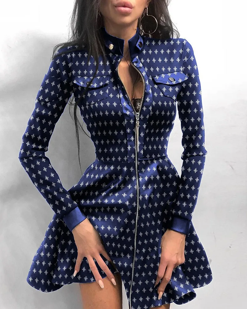 Чувственное мини-платье на молнии с длинным рукавом, повседневное о...