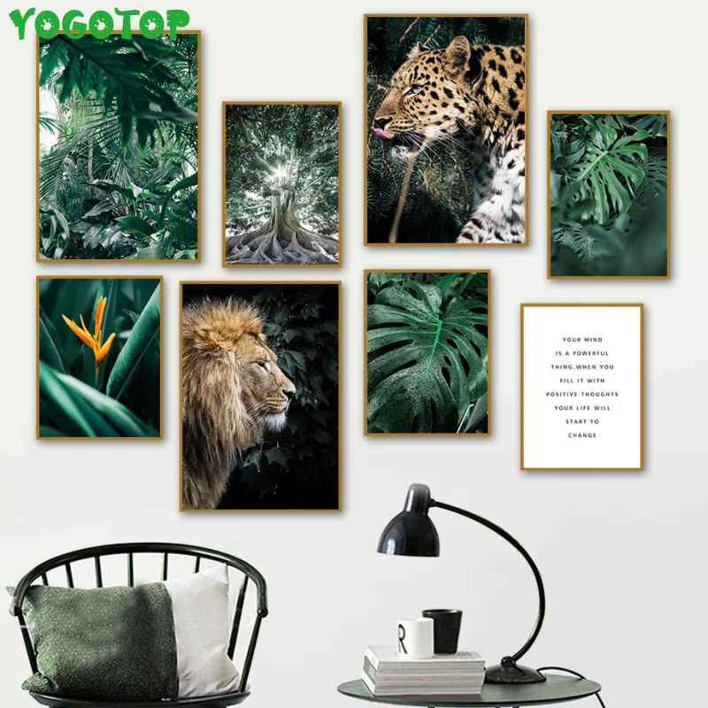 Настенная картина с изображением джунглей гепарда льва монстеры листьев дерева алмазная живопись своими руками 5D полная мозаика Алмазная вышивка настенное искусство YY5271