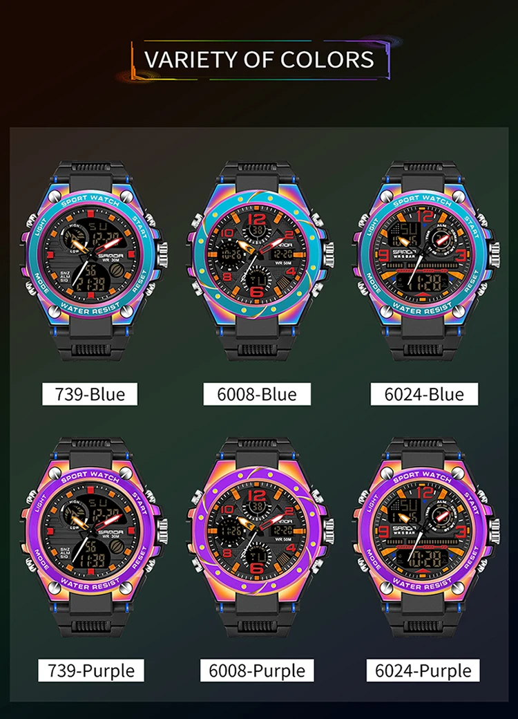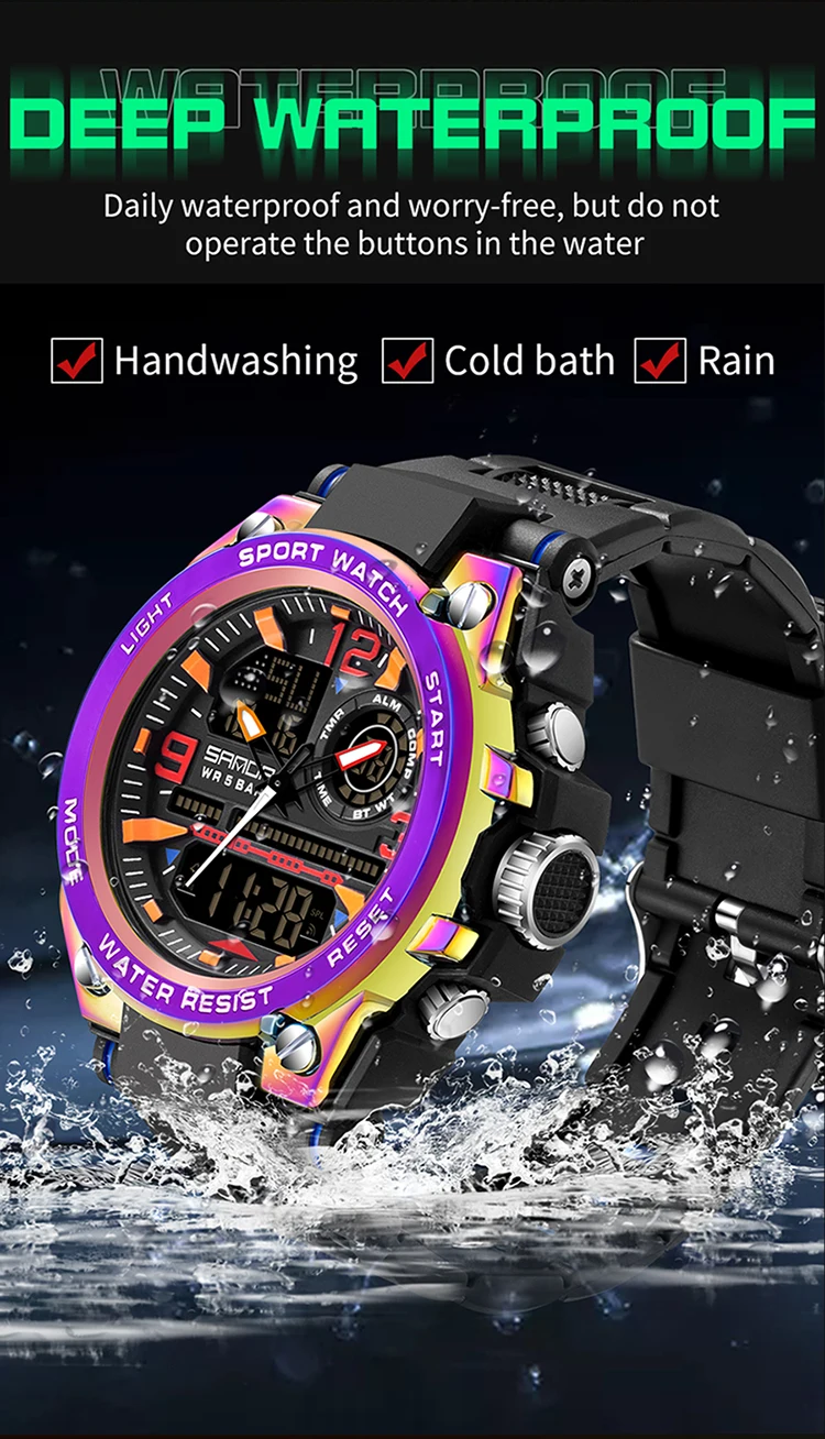 Часы SANDA мужские водонепроницаемые с двойным дисплеем, брендовые ...