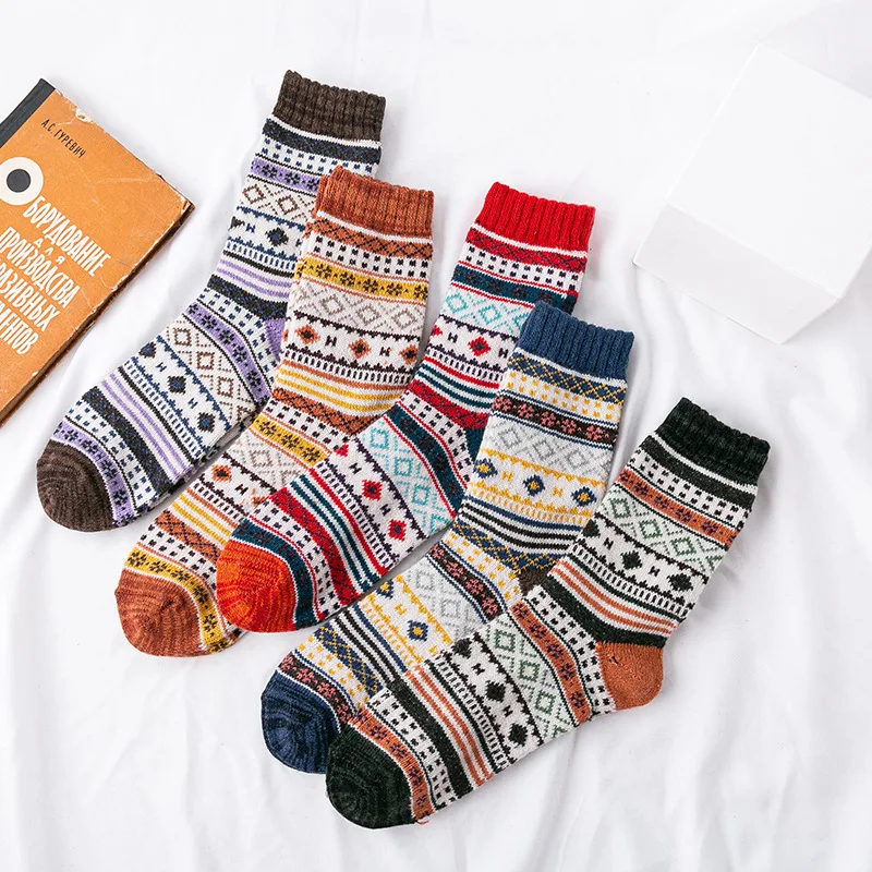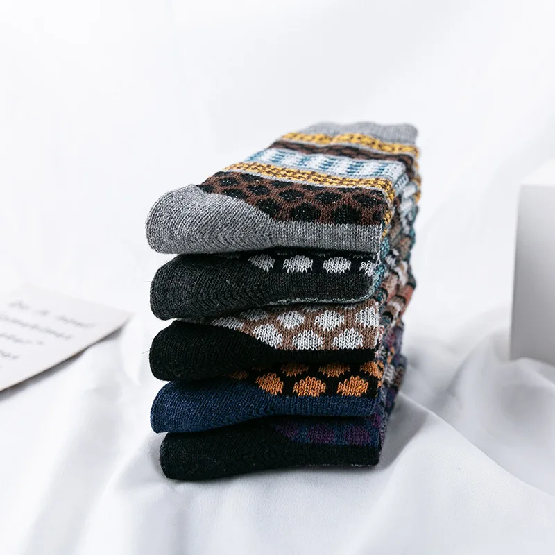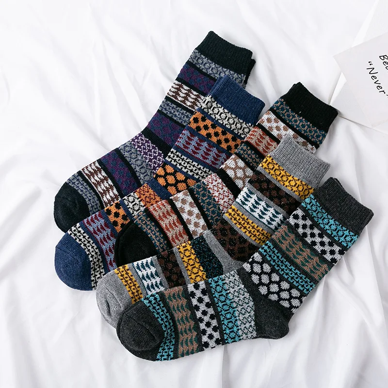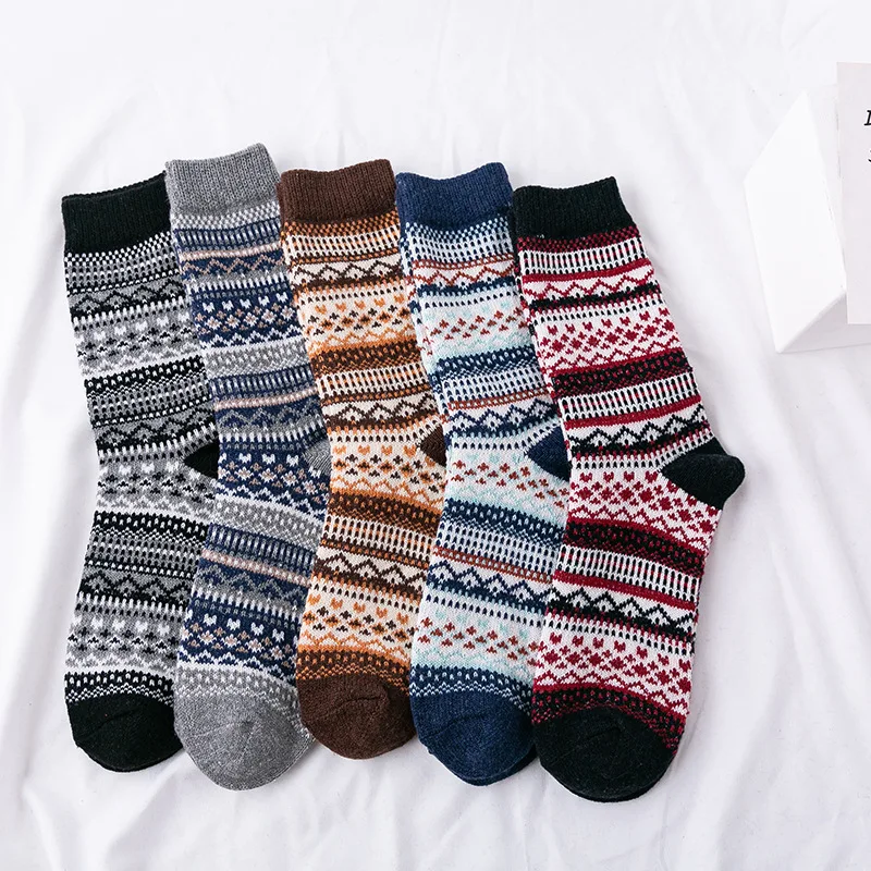 5 партЛот, новинка, зимние мужские зеркальные шерстяные носки, винтажные рождественские носки, цветные носки, подарок, свободный размер