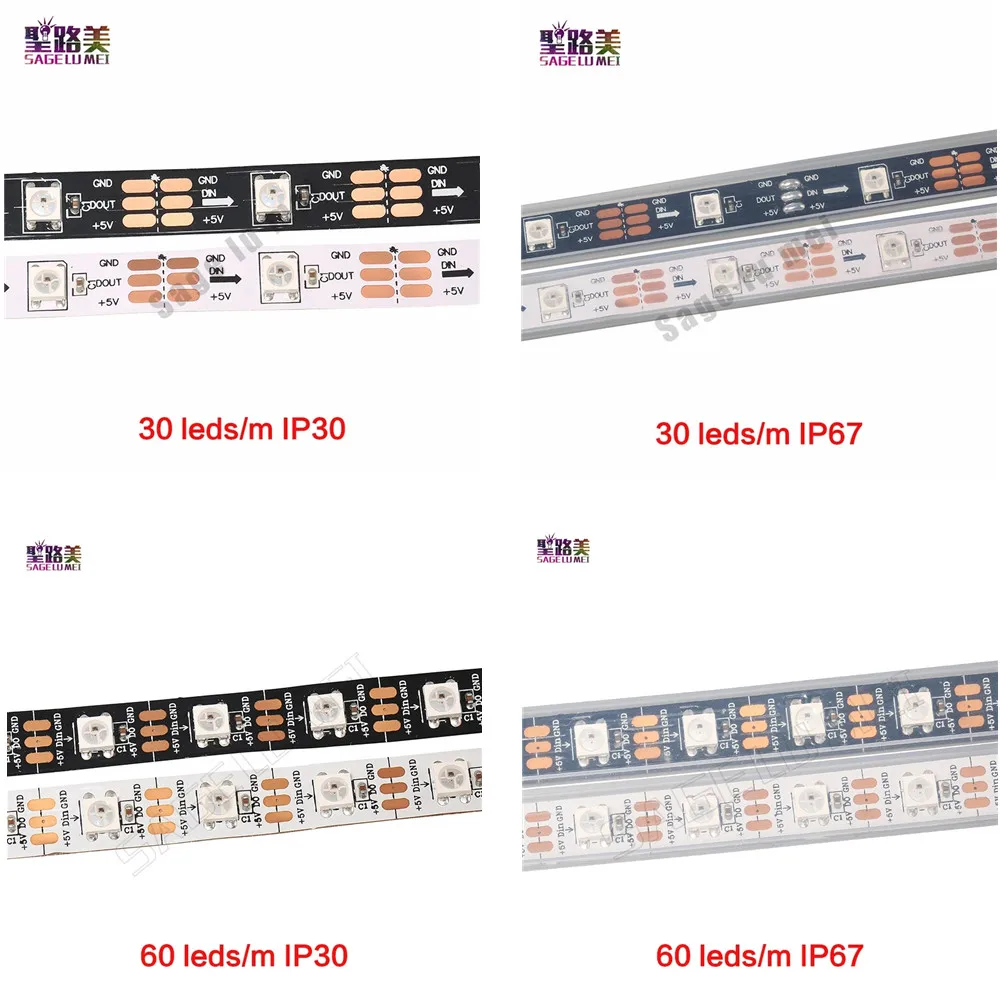 5 мрулон WS28122812B RGB светодиодный полосы индивидуально адресуемых 3060 светодиодный s Magic Цвет чёрно-белые печатные платы 5V ВодонепроницаемыйNon-Водонепроницаемый