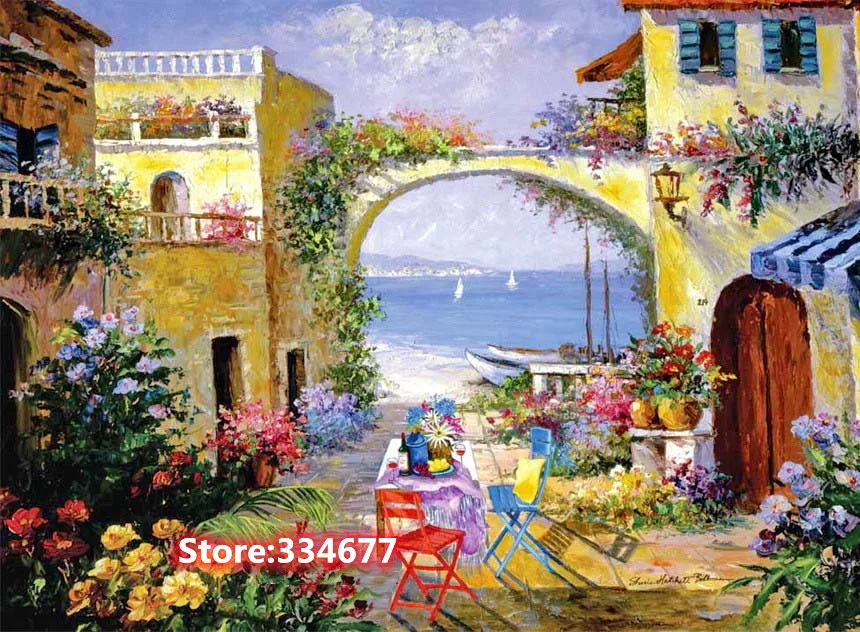 Приморский городской пейзаж ручной работы Наборы для вышивания DIY ...