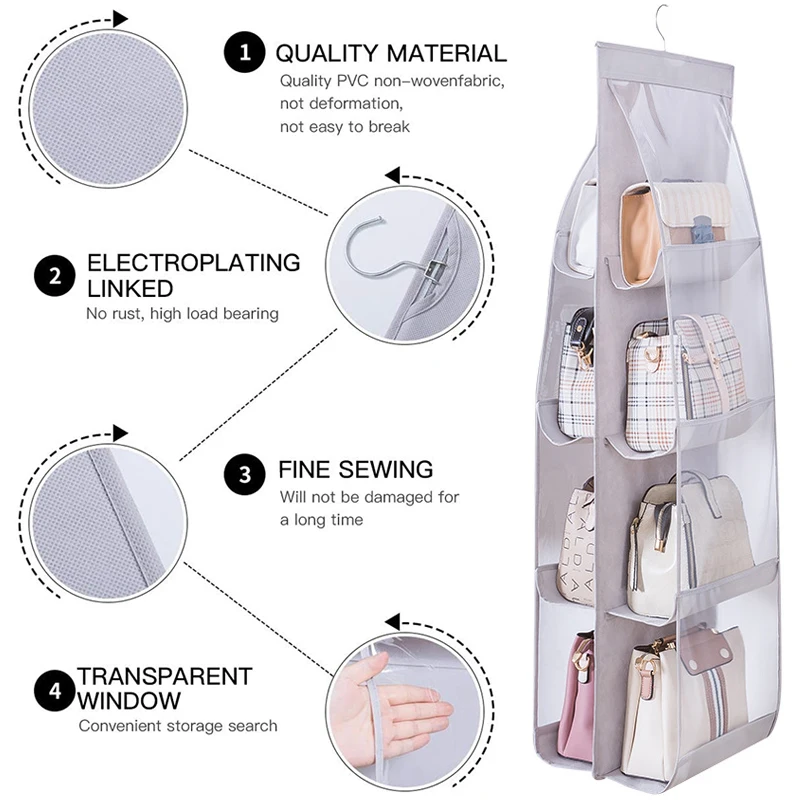 8 слотов:4 спереди и 4 в задней части Кошелька Органайзер система хранения позволяет Много хранения сумочек и организация кошелька.