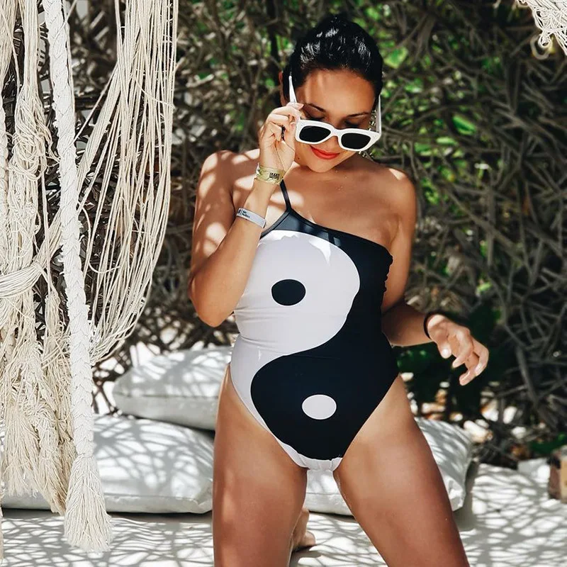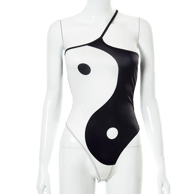 Женское боди с принтом ZHYMIHRET, черно-белое, с открытой спиной, летний топ, 2021
