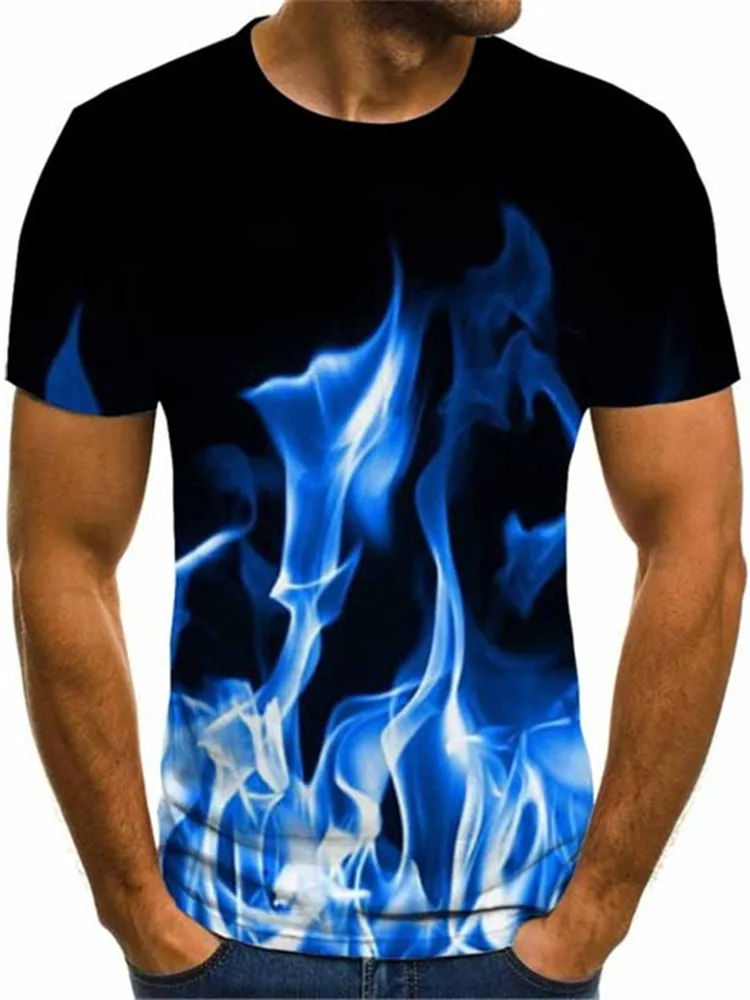 Мужская футболка, летняя новая футболка с 3D-принтом пламени 2021, Мужской Топ, рубашка с дымчатыми элементами, модная одежда с короткими рукавами размера плюс, 6XL