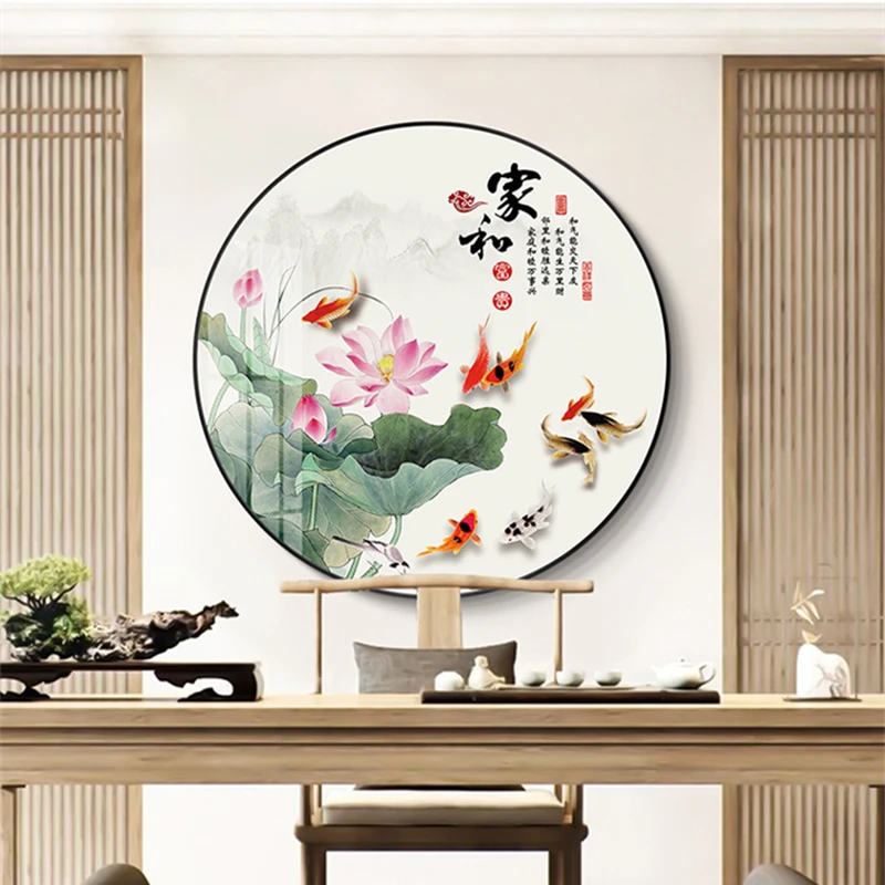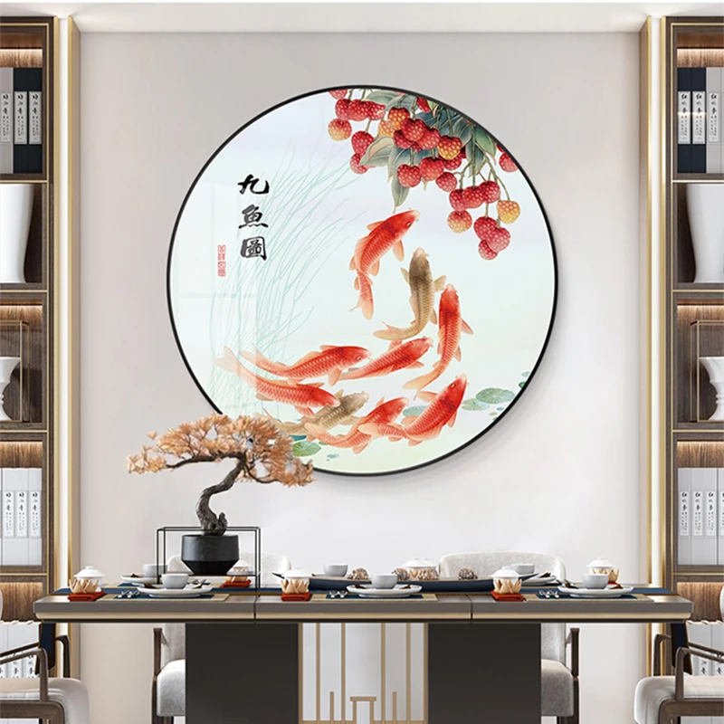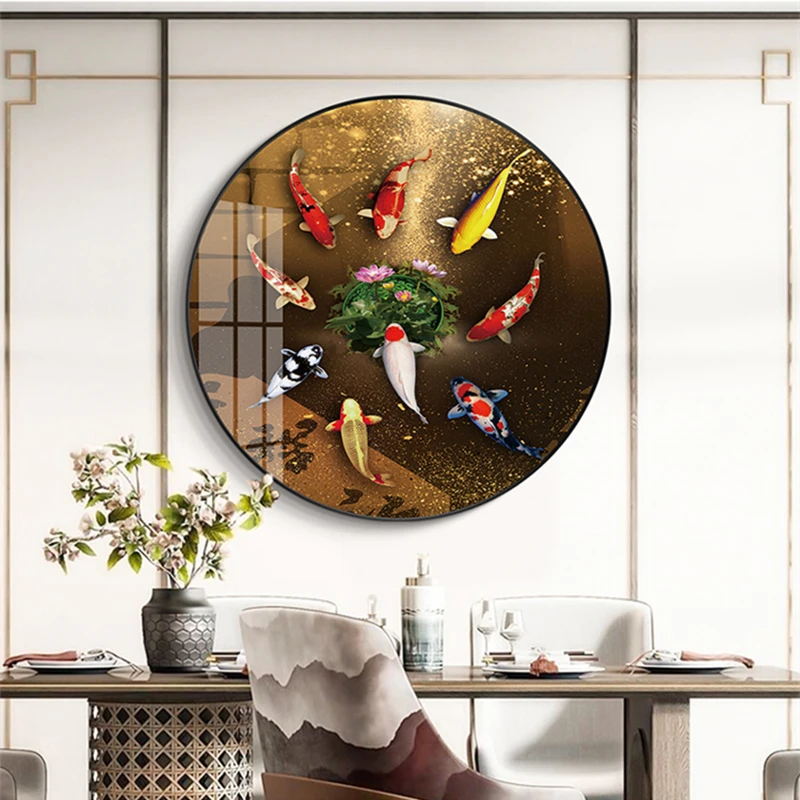 Девять рыбы, с надписью "Lucky charm" дом декоративный цветок настенный китайский Арт холст для живописи плакат картина принт Гостиная Офис деко