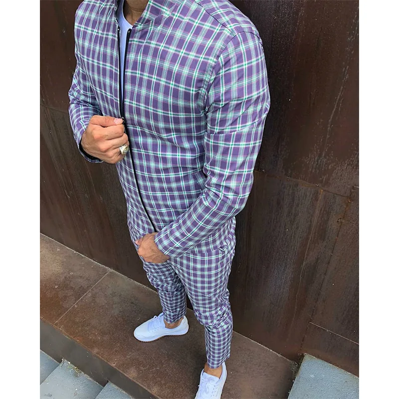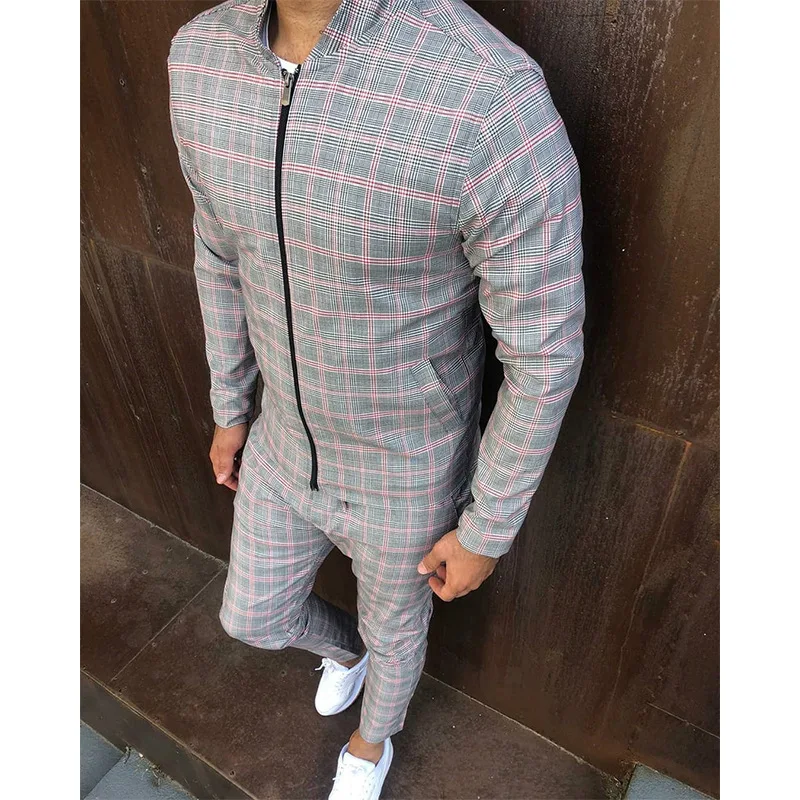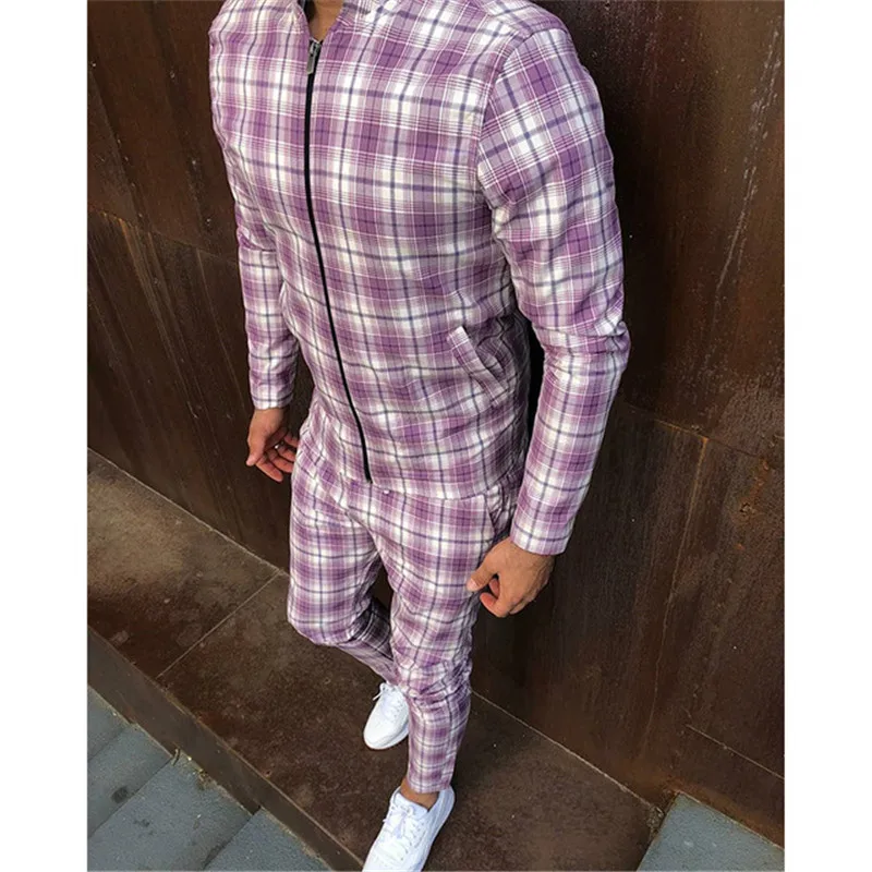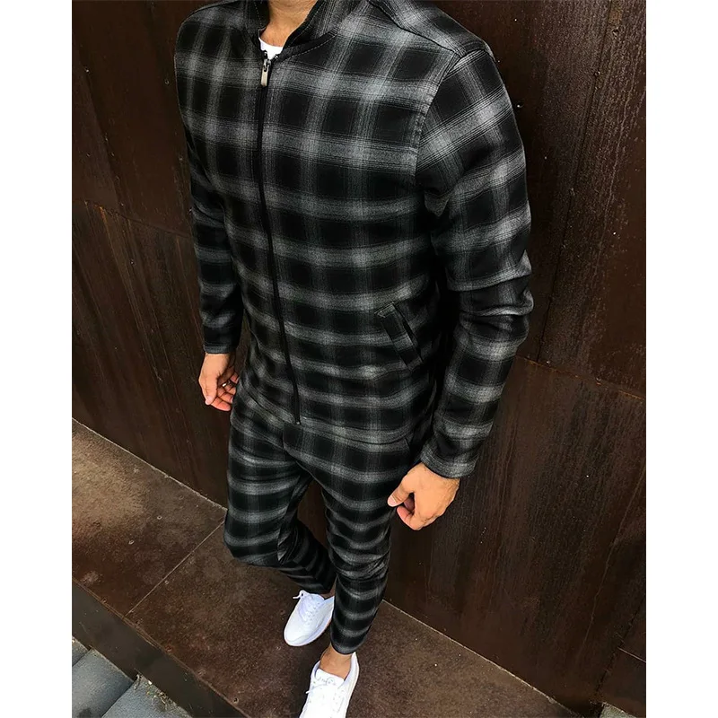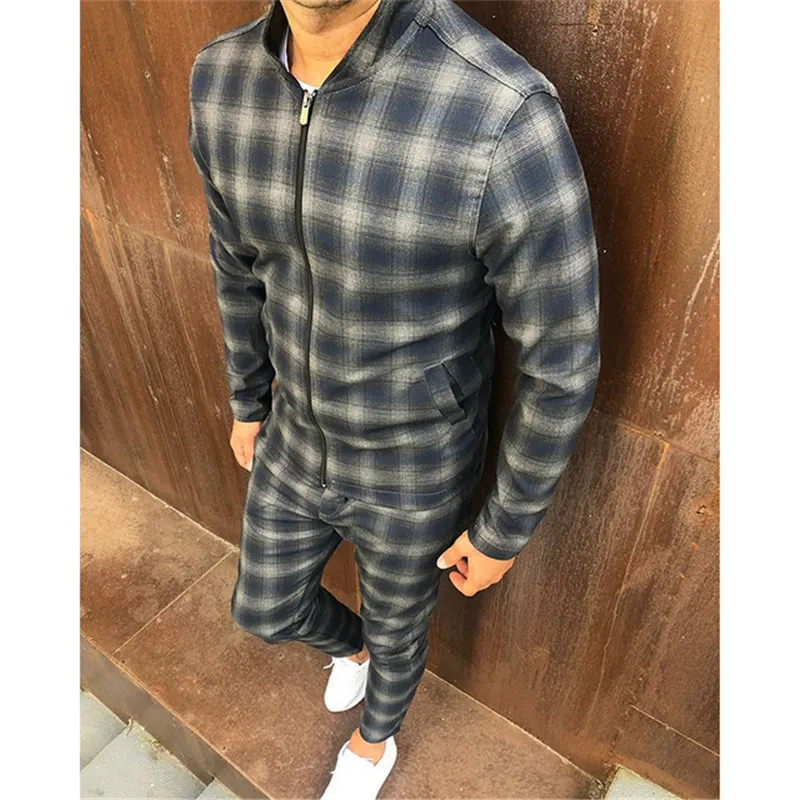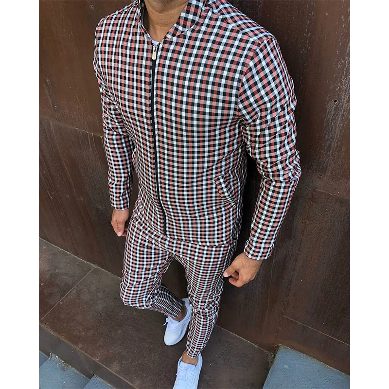 Мужской Клетчатый спортивный костюм с объемным рисунком, мужской ко...