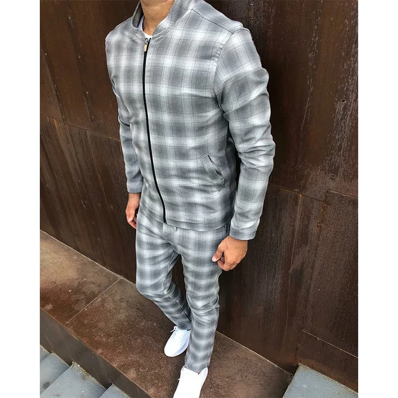 Мужской повседневный костюм на молнии, с воротником-стойкой