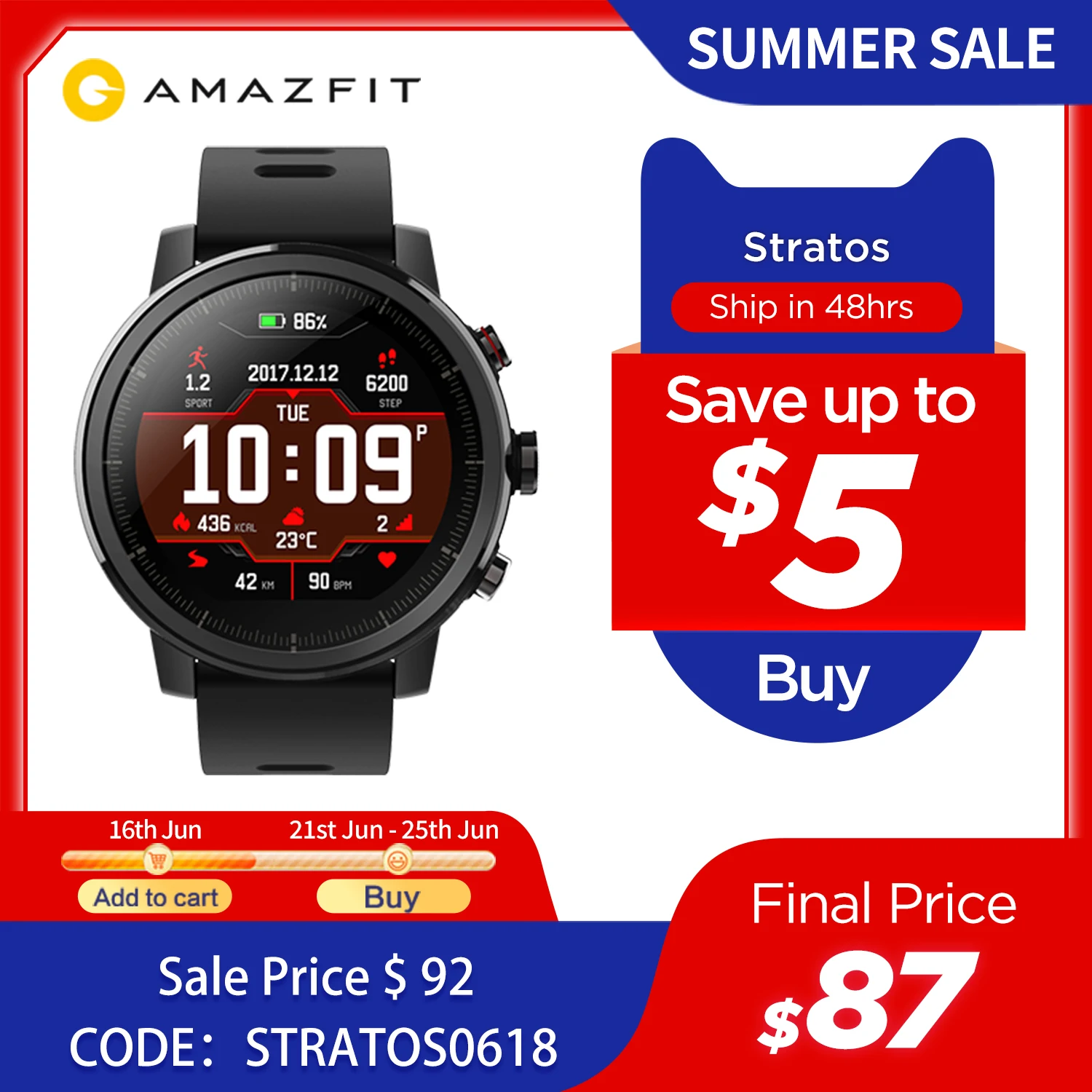 Оригинальные Смарт-часы Amazfit 2 Stratos, Смарт-часы с GPS, отсчет...