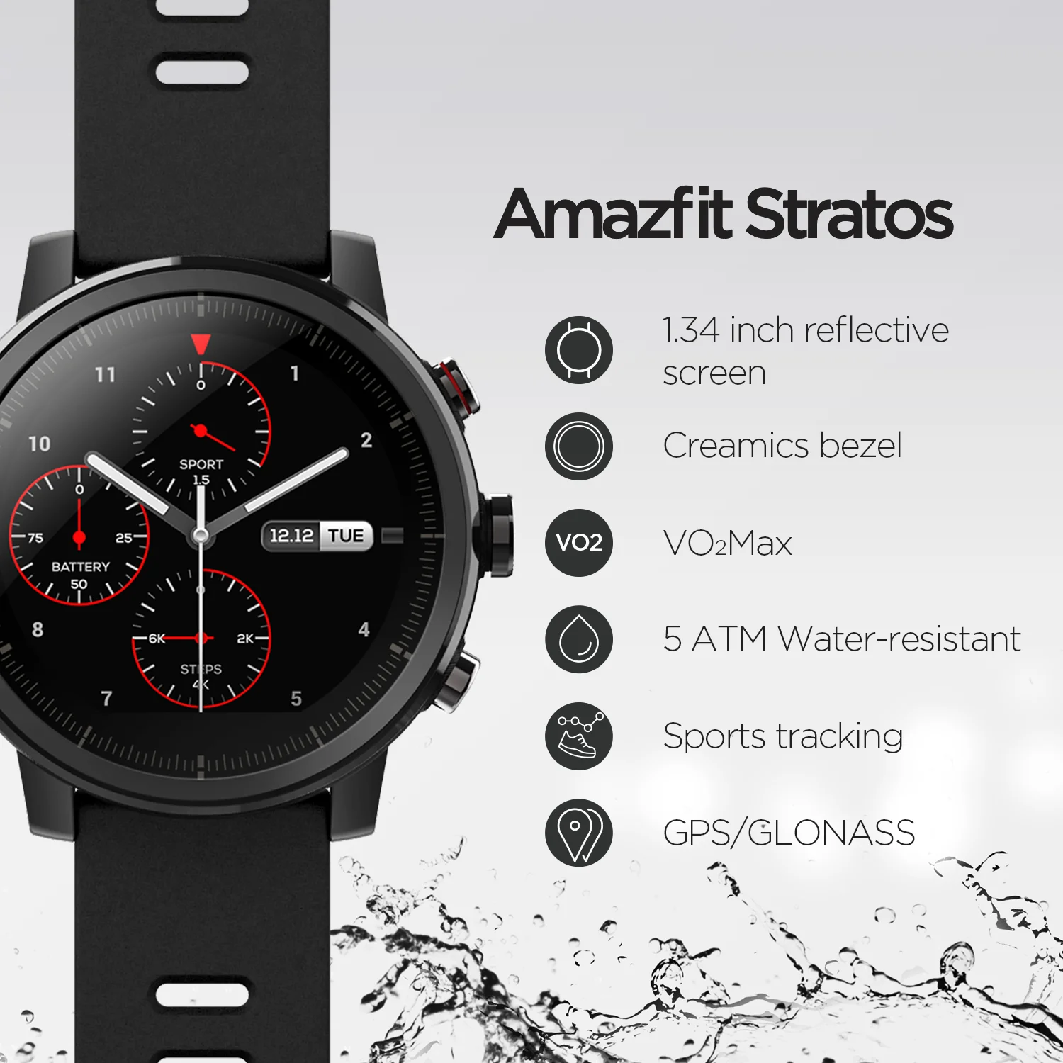 Смарт-часы Amazfit Stratos, Bluetooth, GPS, водостойкие, 50 м