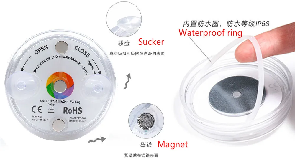 Погружной RGB светильник с магнитом и присоской, 13 светодисветодиодный