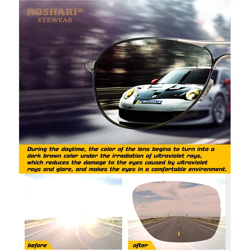 Фотохромные поляризационные солнцезащитные очки RoShari с антибликовым покрытием дневное и ночное видение очки для вождения для мужчин и женщин