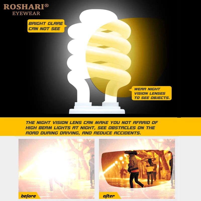 Очки ночного вождения RoShari дневные и ночные антибликовые солнцез...