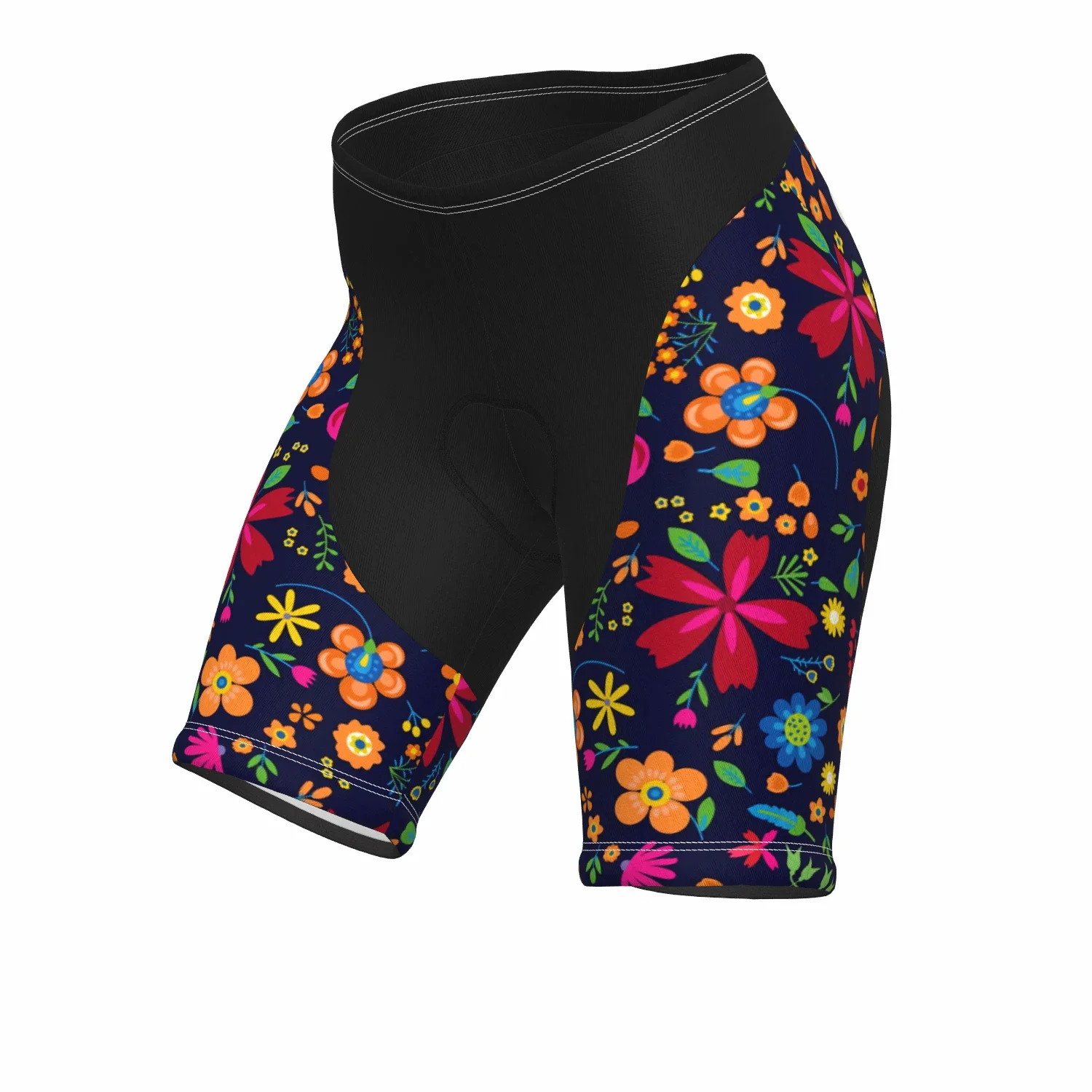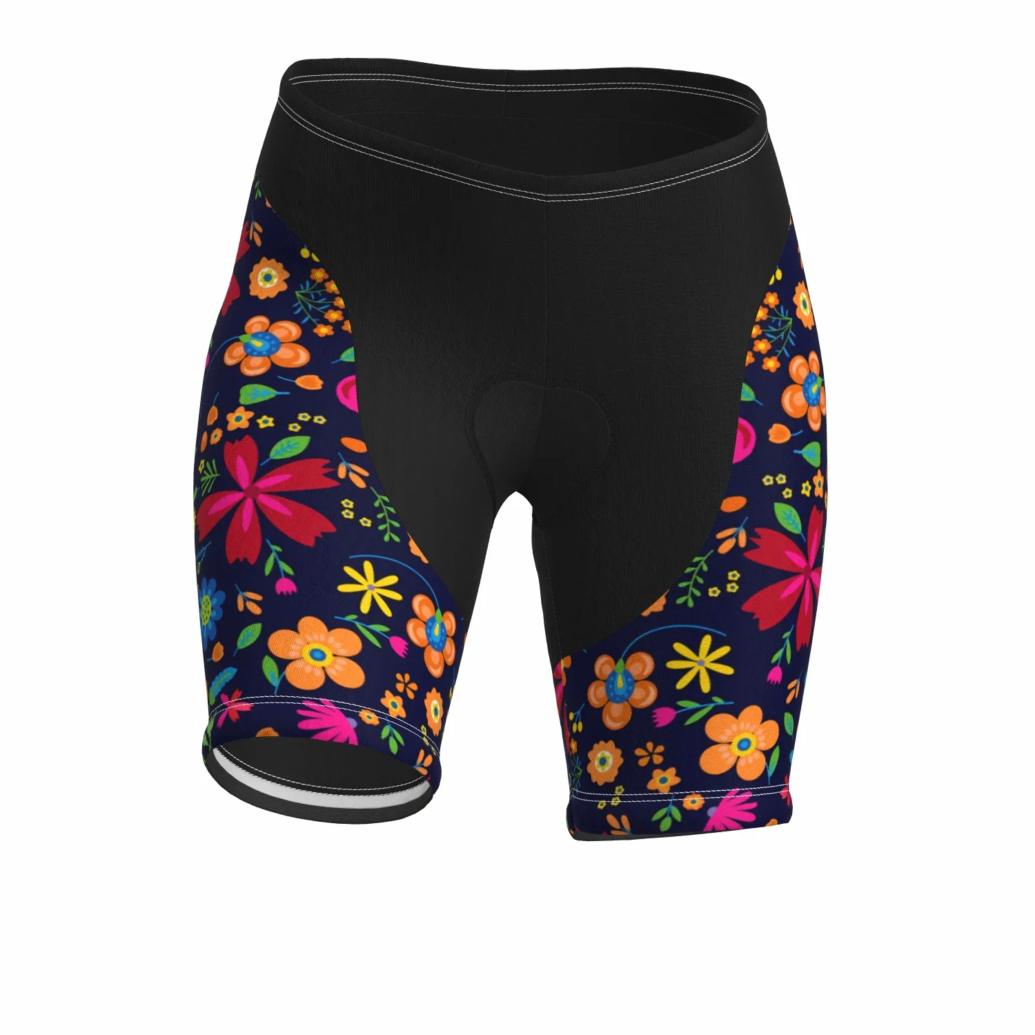 Женские велосипедные шорты, летние велосипедные шорты из спандекса и полиэстера, шорты с мягкой подкладкой, дышащие спортивные шорты с 3d-вставками и цветочным принтом