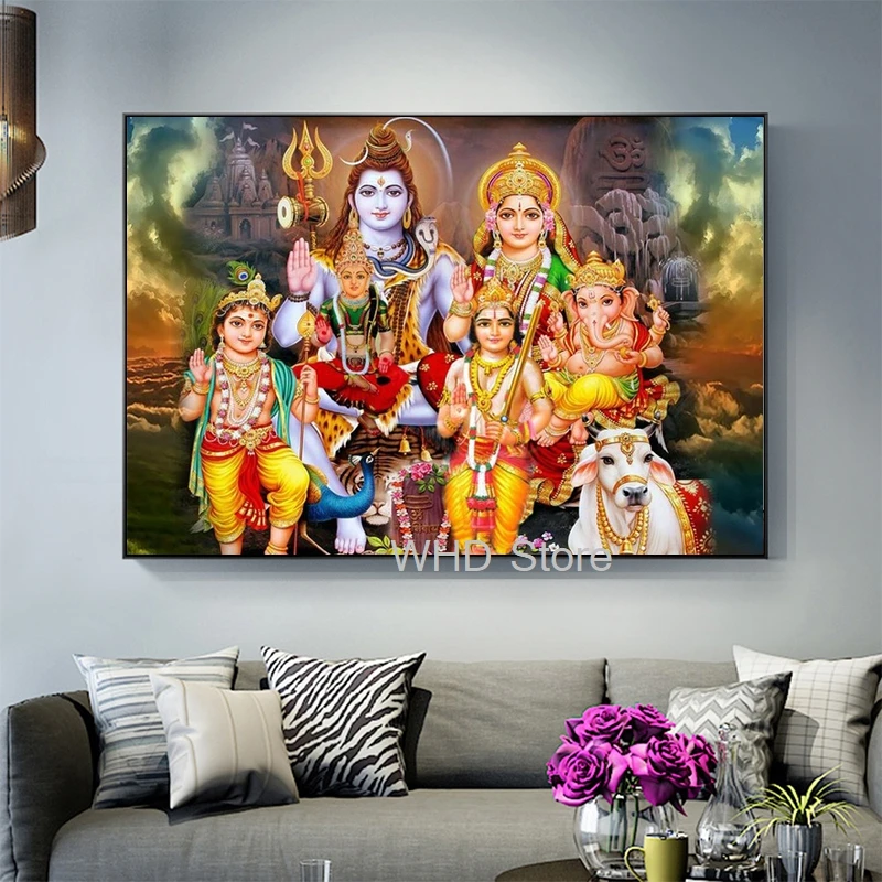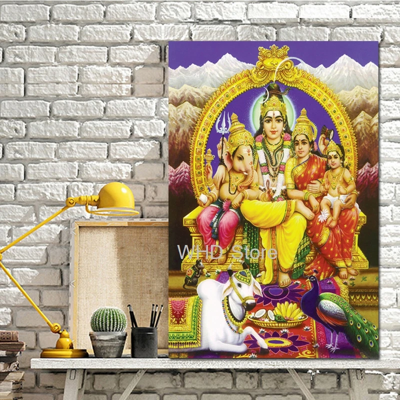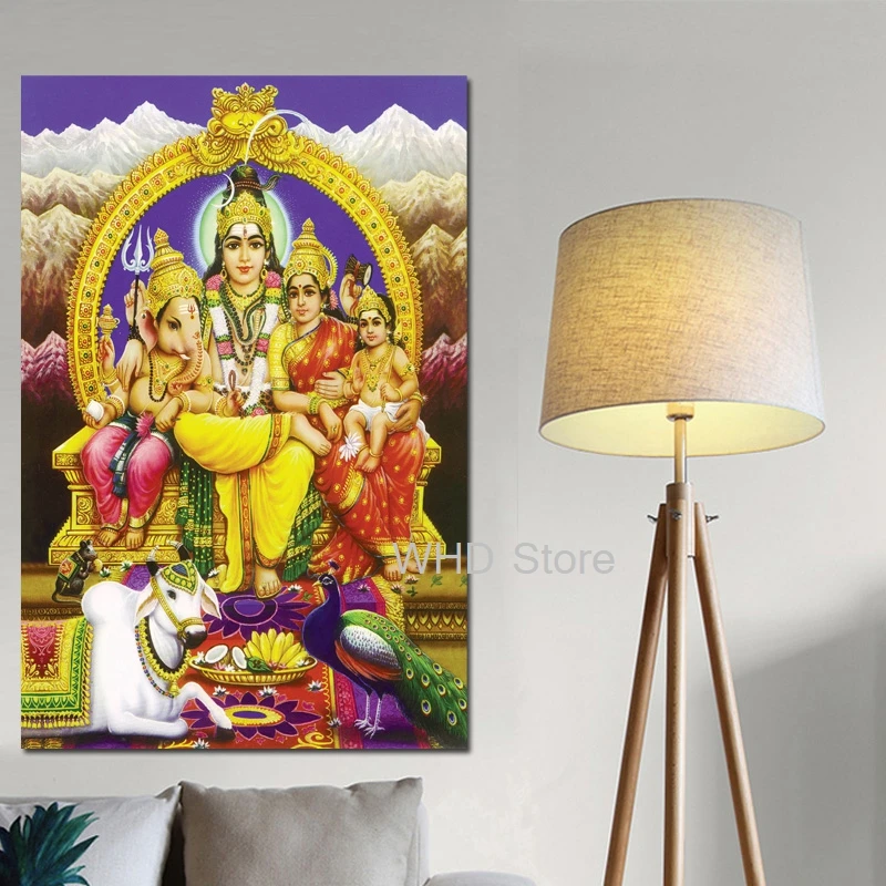Картина на холсте Shiva Parvati, Ганеша, индийское искусство, индуистский Бог, религиозный постер, Настенная картина для гостиной, Куадрос