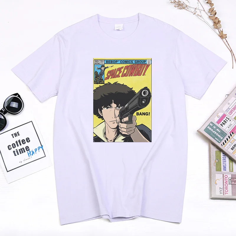 90s короткая футболка с героями из японского аниме Ковбой Бибоп футболка ковбойские Staroust в прямом эфире Марс сегодня Футболка с принтом повседневные свободные модная летняя мужская футболка