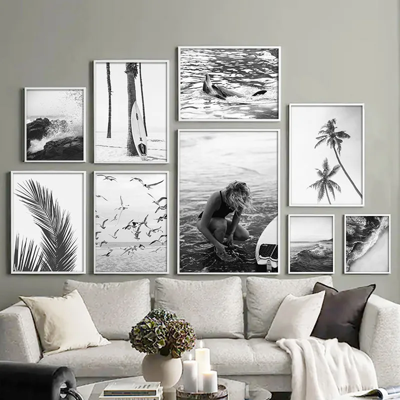 Морской пейзаж, современное настенное искусство, холст, картина, скандинавский постер, черный, белый, украшение для дома, картина для декорирования стен FJ011