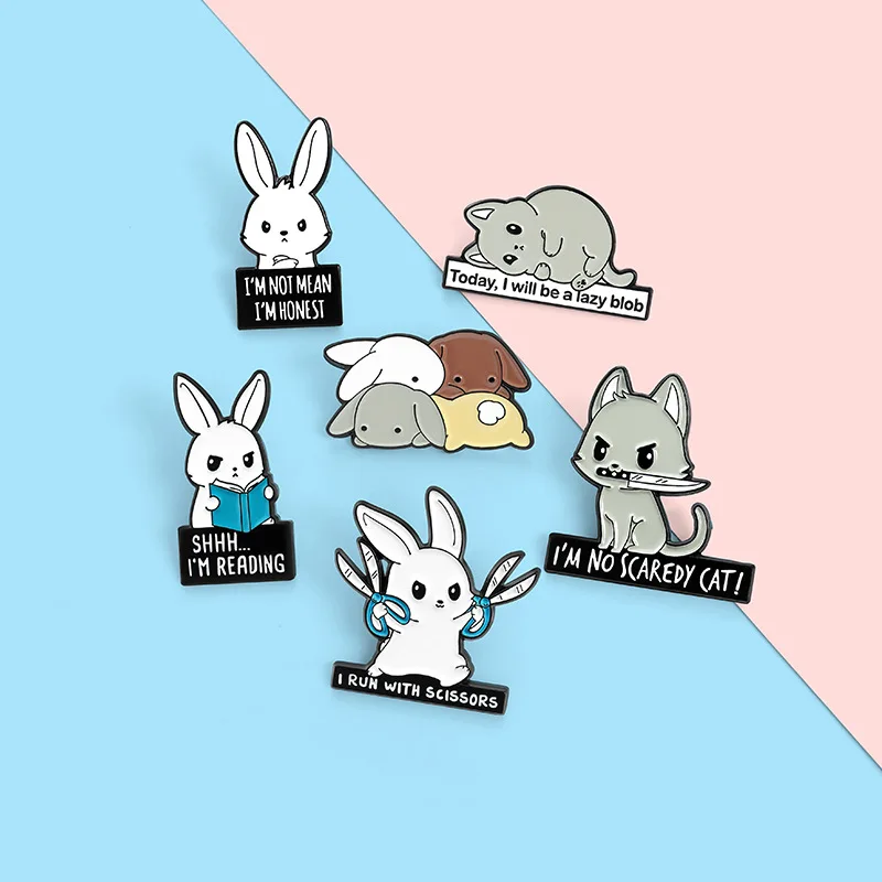 Мультяшная эмалированная булавка с милыми животными, забавная брошь в виде кошки, кролика, булавка для шляпы, сумки, рубашки, пальто, Декор, мультяшный значок, подарок